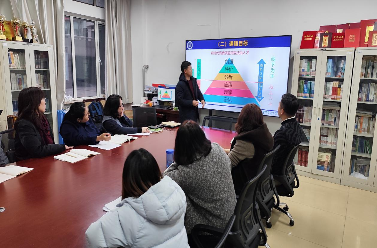 按照学校工作部署,为进一步提升学院整体教学水平,构建“自觉、自省、自律、自查、自纠”的质量文化机制,迎接新一轮审核评估工作及达到硕士点建设要求,12月12日,法学院召开说课讨论会,组织4个教研室开展“说课程”活动。各教研室主任积极动员组织并准备充分,除出差培训教师外,全体授课教师均参与,学院领导班子到现场进行点评。