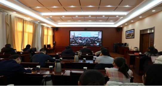 本次会议通过线上和线下相结合的方式进行,主会场设在自治区教育厅,鸭脖在办公楼4楼会议室设立分会场。校党委委员、副校长额尔敦布和出席本次视频会议。教务处、发展规划与学科建设处、各学院相关负责人参加会议。