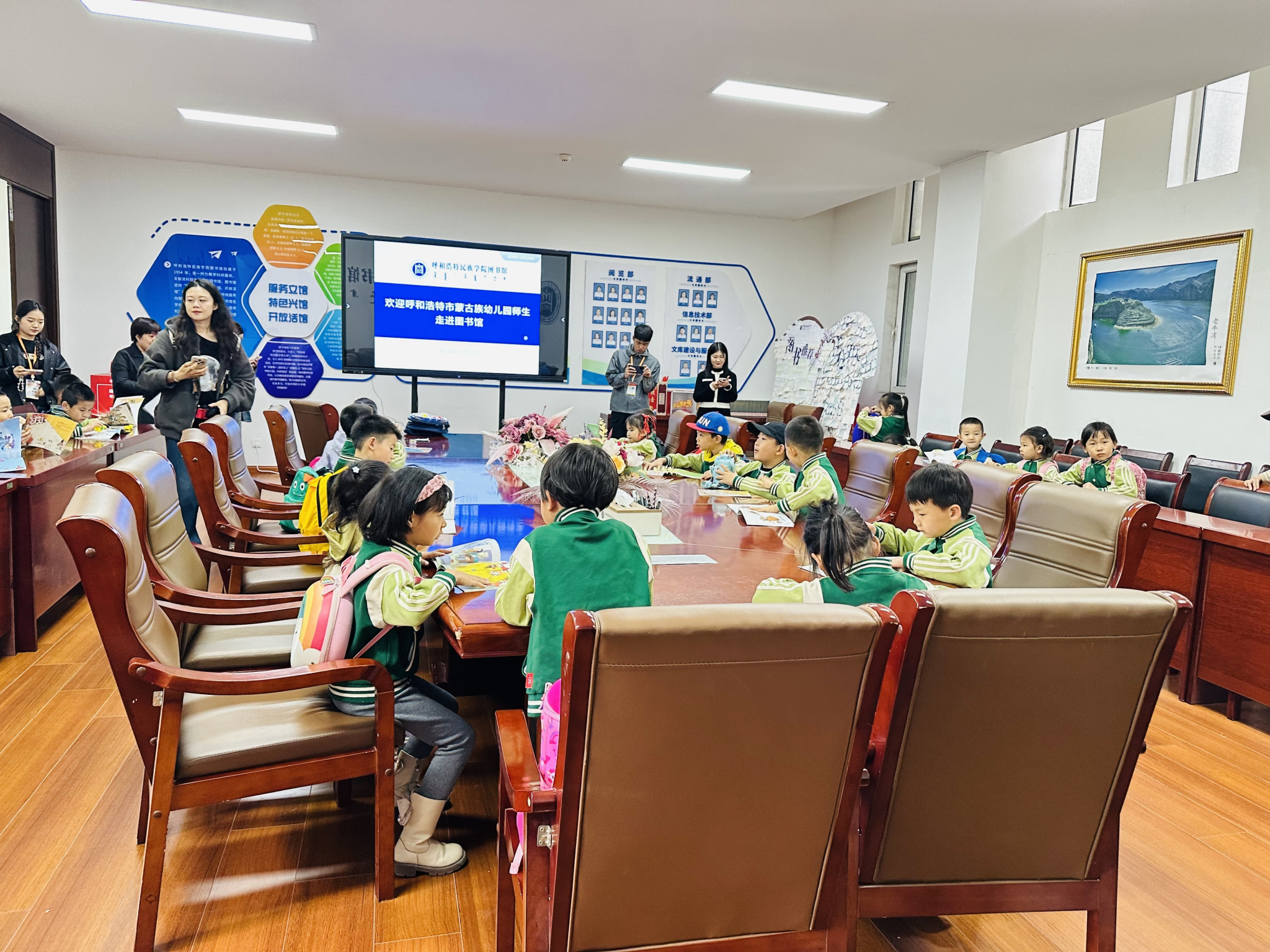 活动现场,幼儿园孩子与学前教育专业师范生组成“学习共同体”。在逸夫楼,师范生带领幼儿走进多功能、美工环创、电钢等实训室,用环创设计与音乐知识引导幼儿感知色彩韵律;利用班级模拟、感统与保育实训室,让幼儿在游戏中锻炼协调能力、探索健康知识,师范生也在实践中深化“保教结合”理念,精进教学与管理能力。南图书馆的“传统文化探秘”活动,进一步提升了师范生整合资源与创新教学的素养。