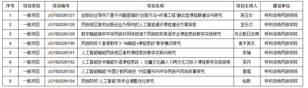 鸭脖入选2026年内蒙古自治区本科教育教学改革研究项目名单