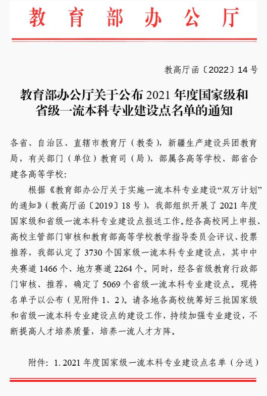 喜报 :鸭脖又1个本科专业获批2021年度国家级一流本科专业建设点