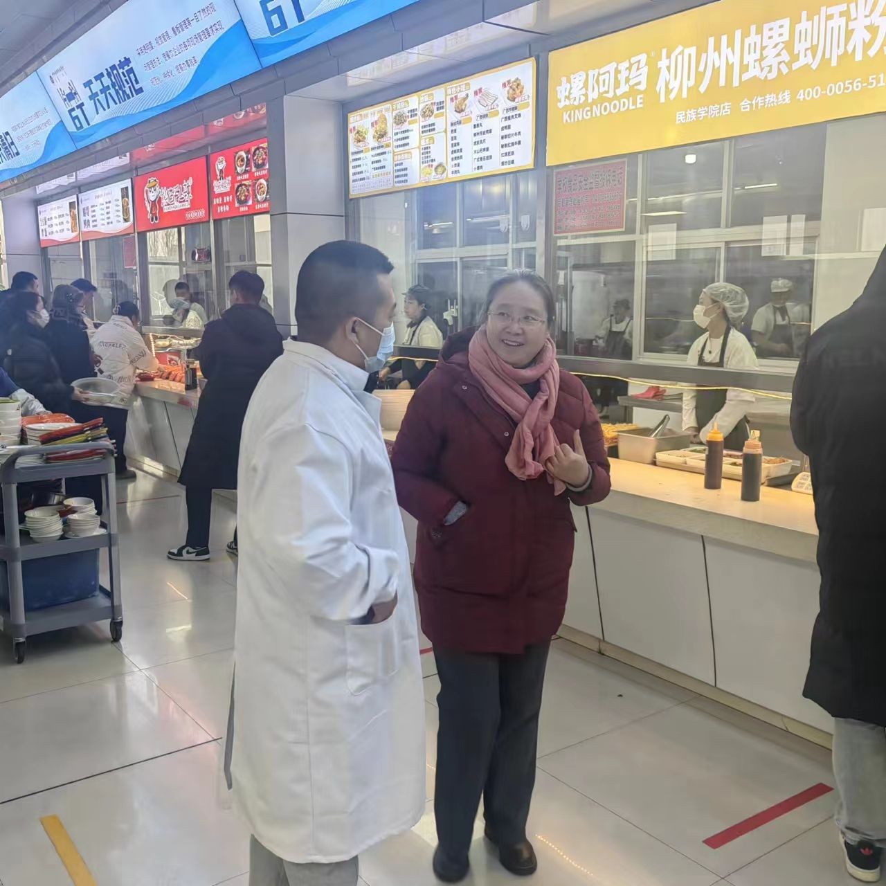 为深入学习贯彻习近平总书记关于安全生产的重要论述,排查安全隐患,全力保障校园餐安全,11月27日,纪委书记王冬梅深入北区学生食堂开展安全督导检查工作。 “校园餐”安全是解决群众身边不正之风和腐败问题的重要举措。在学校食堂王冬梅书记现场检查校园食品安全管理工作,与食堂负责人深入交流,详细了解食品安全监督机制建立健全、菜品种类和价格、食品留样等情况,中午王冬梅书记在食堂就餐。