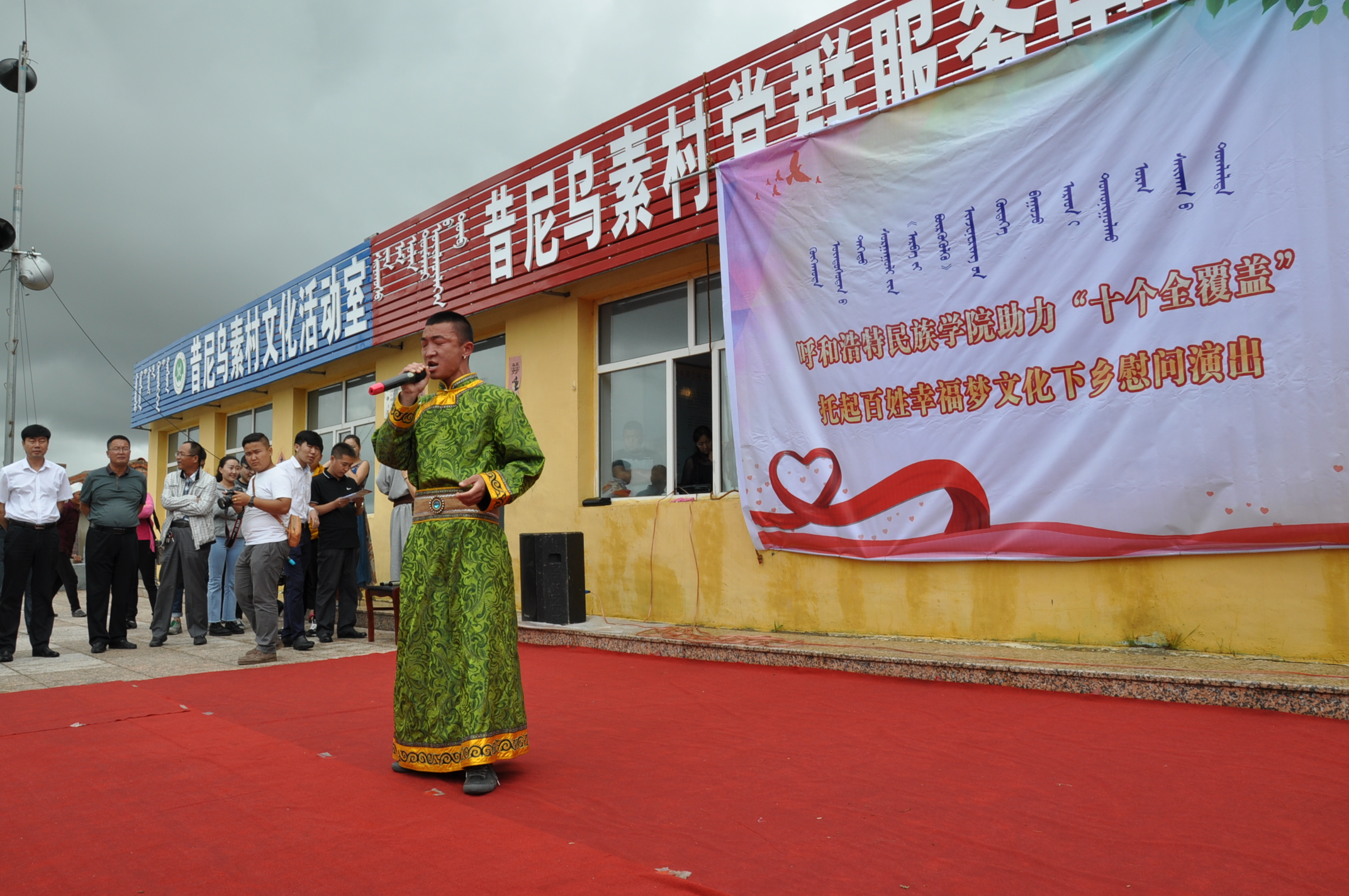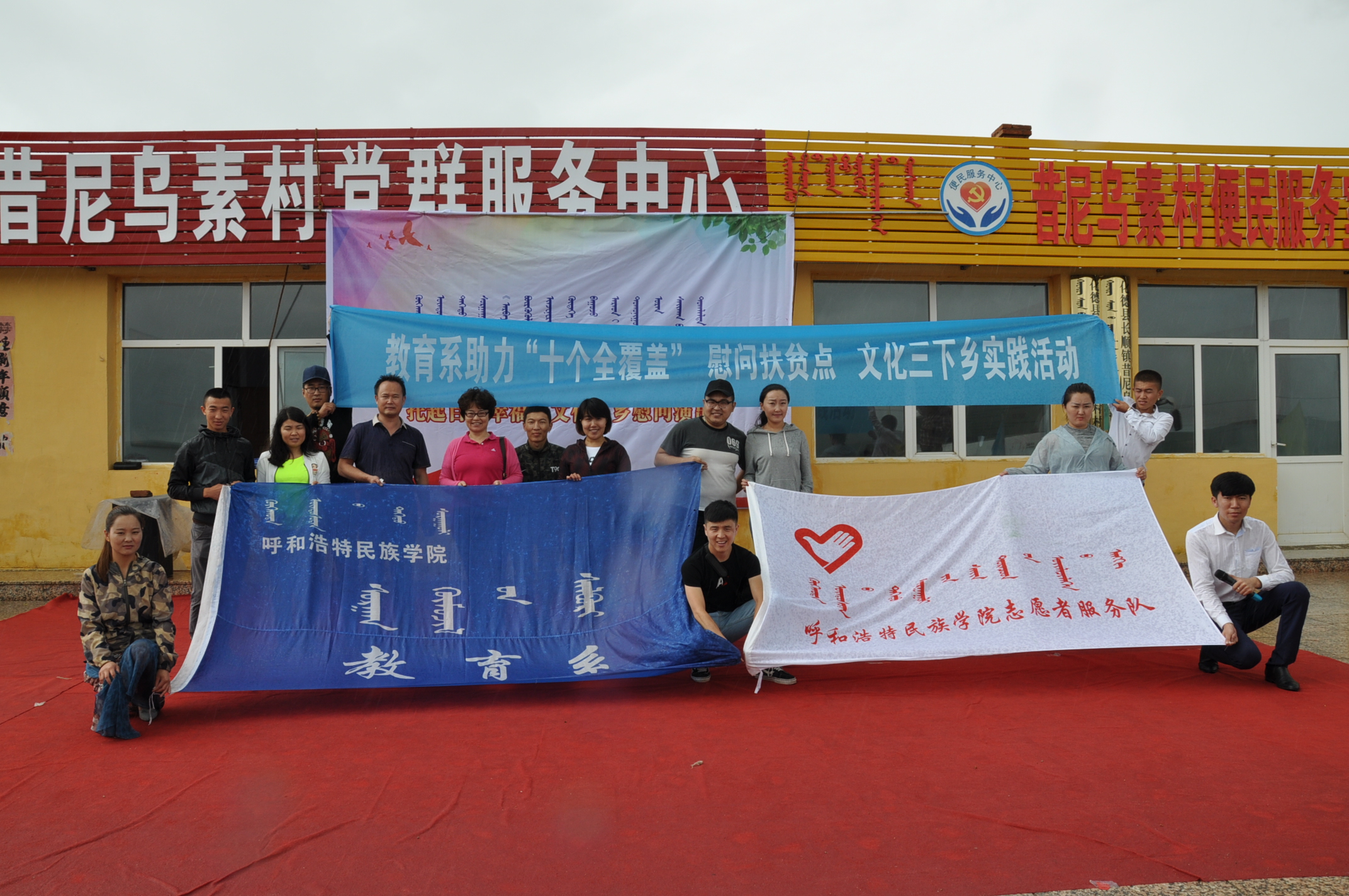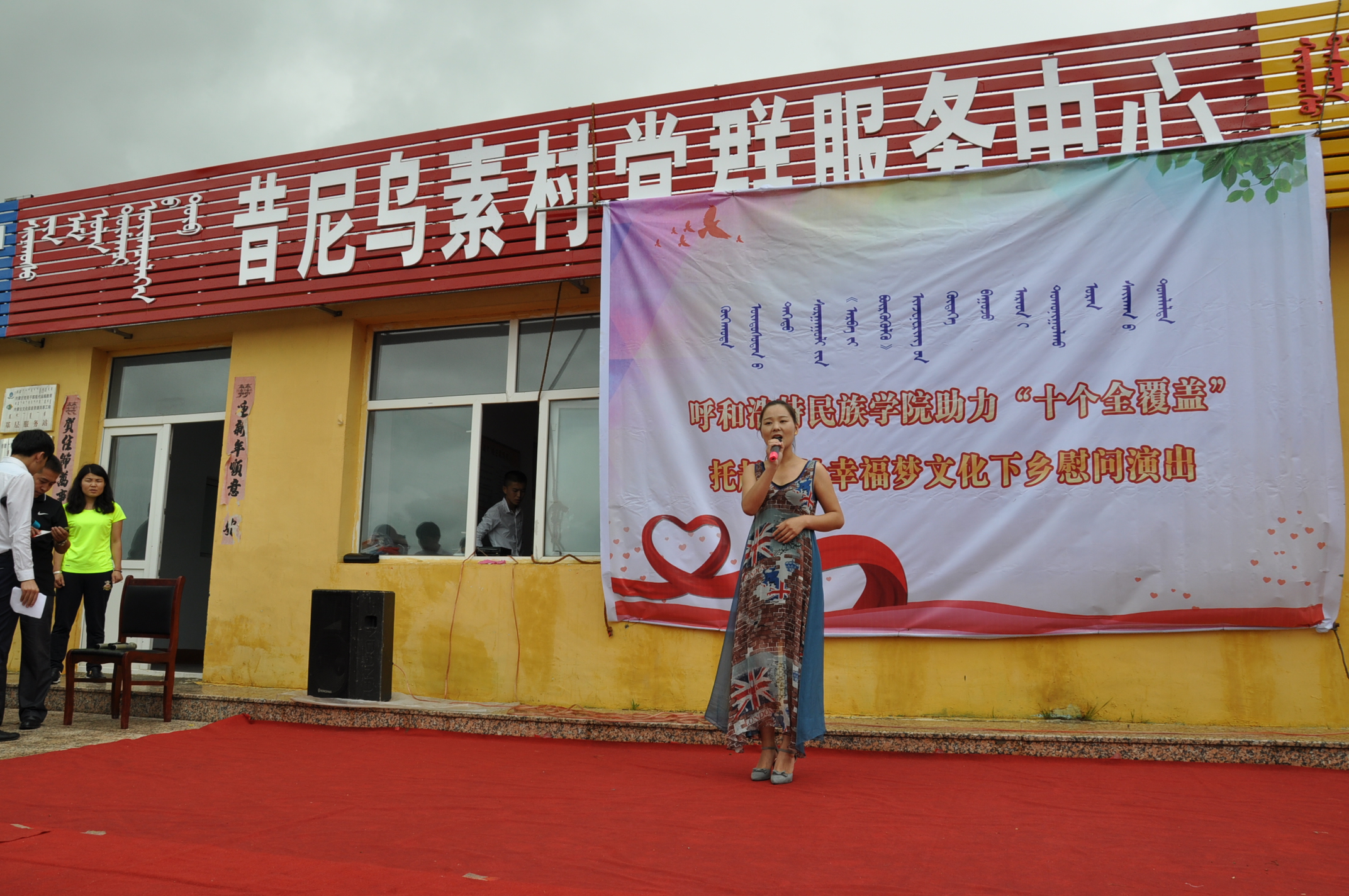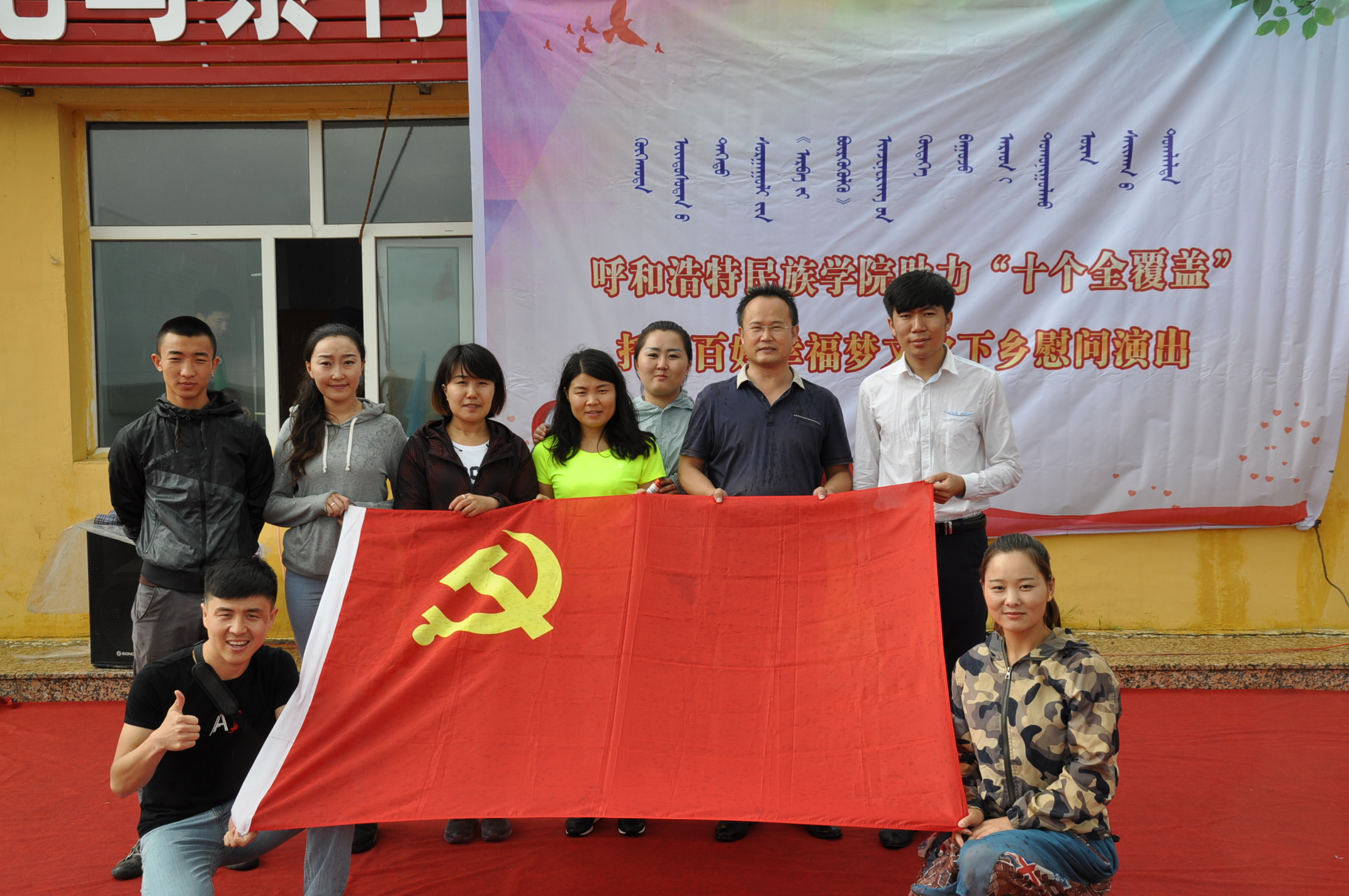 为结合“两学一做”学习教育,助力自治区“十个全覆盖工程”及鸭脖扶贫工作,在学校党政的大力支持下,教育系党总支于2016年7月16日组织师生党员冒着倾盆大雨,赴鸭脖扶贫点——化德县长顺镇昔尼乌素村,举办了《助力“十个全覆盖”托起百姓幸福梦 文化下乡慰问演出》活动。