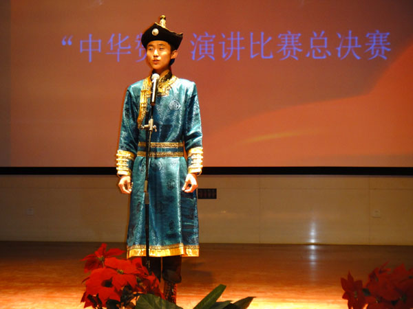 教育系团总支、学生会精心挑选刘时悦、王静、斯琴等三名同学参加了院团委、学生联合会于4月16日晚在图书馆二楼报告厅举办的“爱我祖国 兴我中华”主题演讲比赛总决赛。