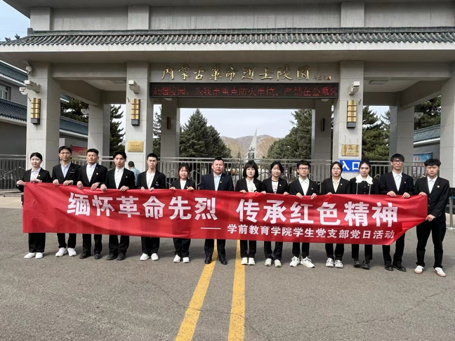 为缅怀革命先烈、继承和发扬革命光荣传统,4月3日下午、学前教育学院学生党支部组织15名学生党员代表赴内蒙古革命烈士陵园开展“缅怀革命先烈、传承红色精神”党日活动。
