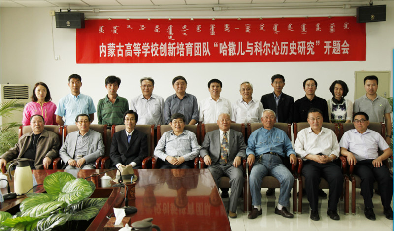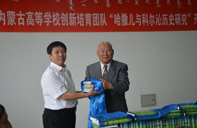 开题会上,学院副院长阿拉坦仓教授、内蒙古社会科学院副院长金海研究员出席会议并分别致辞。内蒙古教育厅科学技术与教育信息化处副调研员傅聿韜宣读内蒙古自治区高等学校创新培育团队“哈撒儿与科尔沁历史研究”批文并做讲话。“哈撒儿与科尔沁历史研究”团队带头人包赛吉拉夫教授代表团队阐述研究计划。内蒙古社会科学院、内蒙古大学、内蒙古师范大学、内蒙古工业大学的专家学者和团队成员围绕该创新培育团队研究计划,进一步论证了团队研究工作思路、方法和主要内容,并提出了意见和建议。《中国蒙古学文库》常务总编内蒙古师范大学格·孟和教授和内蒙古社会科学院哲学与宗教研究所所长额尔敦陶克套研究员分别向团队赠书,共95册。自治区三家媒体对本次会议进行采访报道。