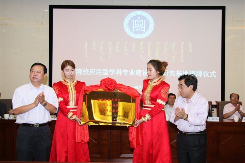 9月8日上午,在我院图书馆一楼报告厅举行了教育部民族教育发展中心“民族院校应用型学科建设重点研究基地”揭牌仪式。教育部民族教育发展中心主任张强、自治区教育厅副厅长张亚民、教育部民族教育发展中心综合研究室主任陈立鹏、自治区教育厅高等教育处处长陈俊杰、我院党委书记迟耀君、院长格日乐图、副书记胡春梅、副院长阿拉坦仓、纪委书记苏雅勒其其格、副院长贺希格吉雅、教育部民族教育发展中心李芳等同志出席揭牌仪式。我院各学科带头人、专业负责人、职能部门及系部负责同志、教师代表和学生代表共计170余人参加揭牌仪式。