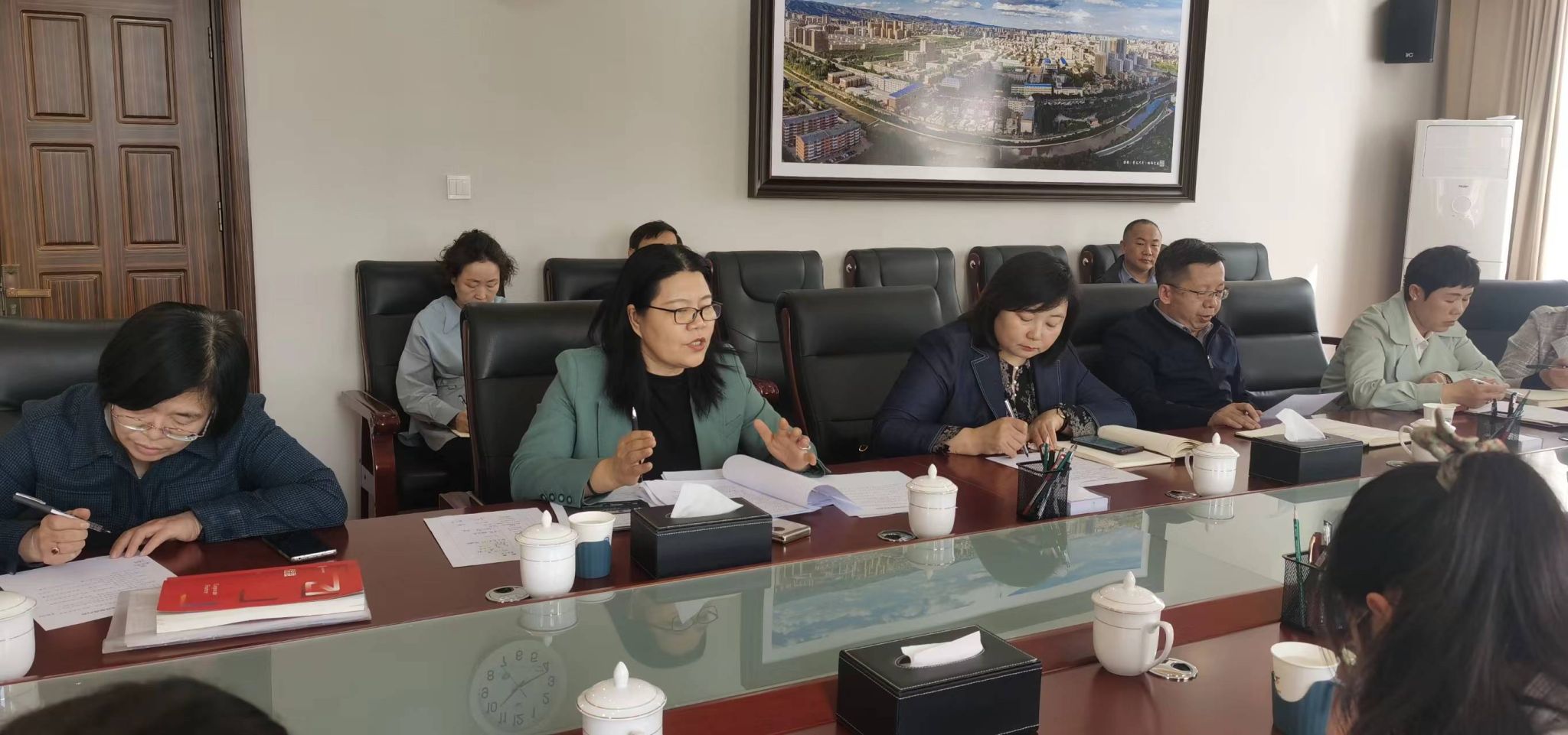2024年4月3日上午,科技处在办公楼2楼会议室召开科研工作巡视整改推进会。学校党委委员、党政办公室主任朝格吉乐图出席了会议,科研处全体成员,各二级学院院长、科研秘书参加了本次会议。会议由科技处苏布道处长主持会议。