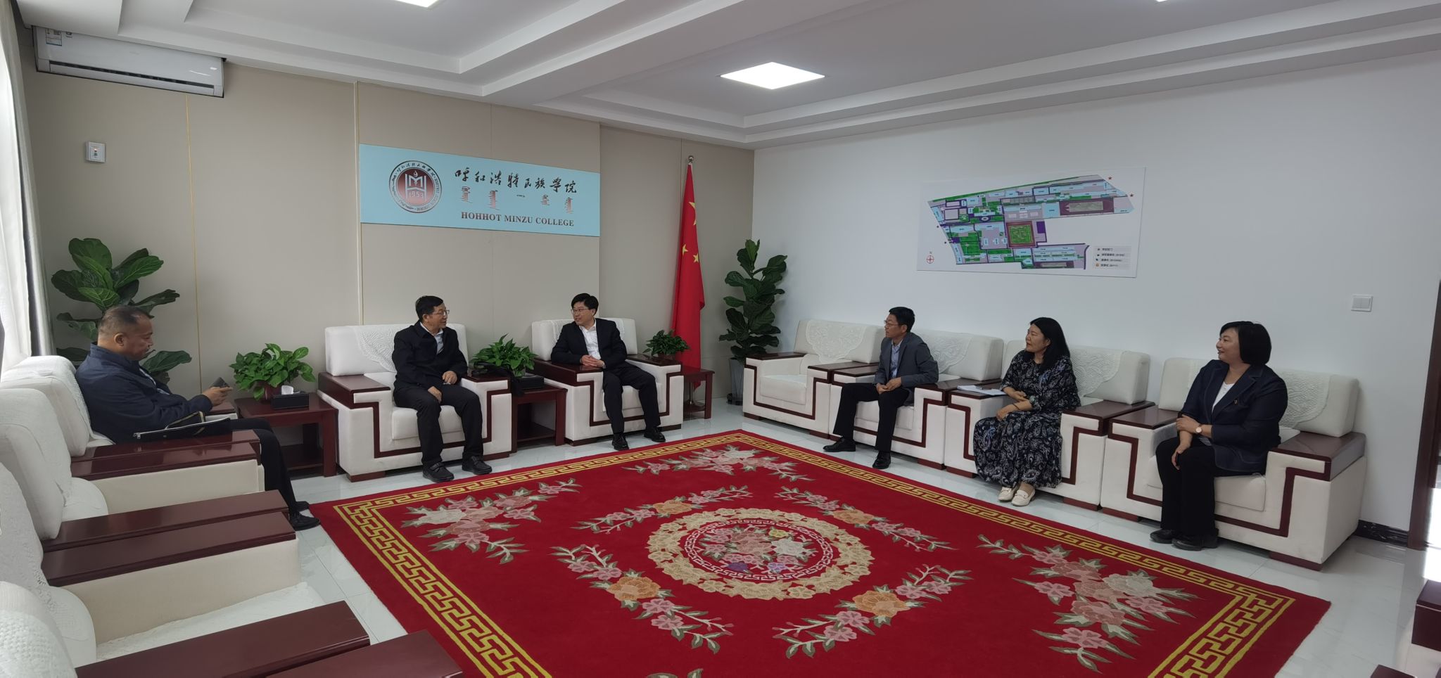 5月14日下午,内蒙古北宸智库研究中心理事长蔡常青、监事长马益波一行来鸭脖考察调研,校党委副书记、校长韩伟新会见调研组一行。韩伟新简要介绍了学校发展历程、特色专业设置等情况,重点介绍了在学校近些年在教学科研方面取得的成绩和下一步工作思路,希望与中心加强沟通合作,推动学校科研工作站取得新进展。校党委委员、副校长高喜天出席座谈。