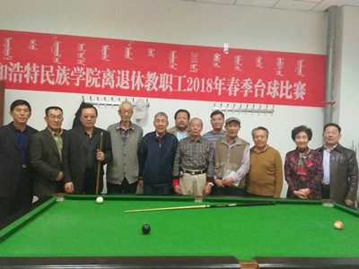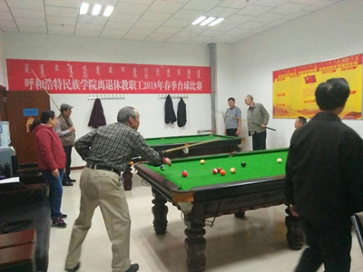 在这万物复苏,春暖花开的季节里,为丰富离退休老干部的文化娱乐活动,更好地满足老同志的精神文化生活需求,近日,离退休人员管理处组织了离退休教职工台球比赛。 本次比赛共有20余名老干部参加,比赛按三局两胜制大循环比赛,经过激烈角逐,最终,乌云毕力格获得第一名,阿照日格图获得第二名,德力格尔获得第三名。比赛中老同志们发扬了“友谊第一、比赛第二”的精神,进一步增进了老同志之间的相互交流和友谊。鸭脖将选取本次大赛的前六名选手参加五月份呼市地区高校老年台球协会举办的比赛。