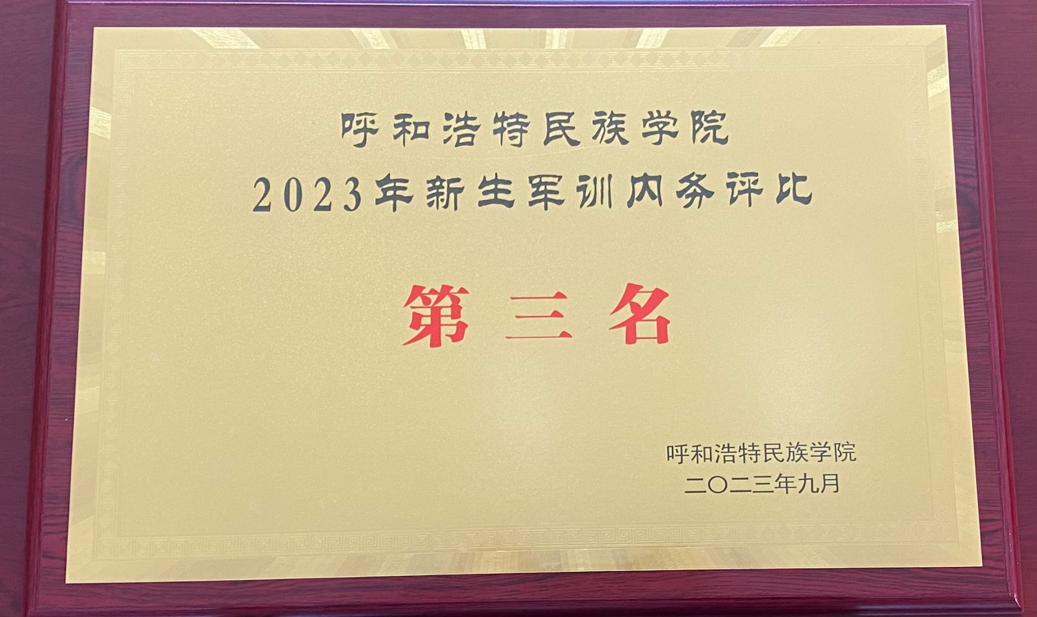 我院获得2023年新生军训内务评比第三名