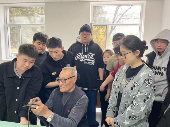 近日,美术学院邀请到乌珠穆沁马鞍制作技术非物质文化遗产传承人敖特根,在课堂上与学生们分享了自己的艺术经历和心得,并开展了马笼头、马嚼子、马鞭、博克服腰带制作等一系列教学活动。