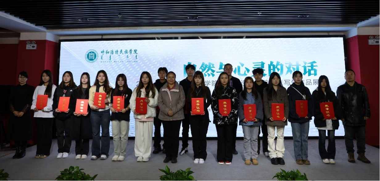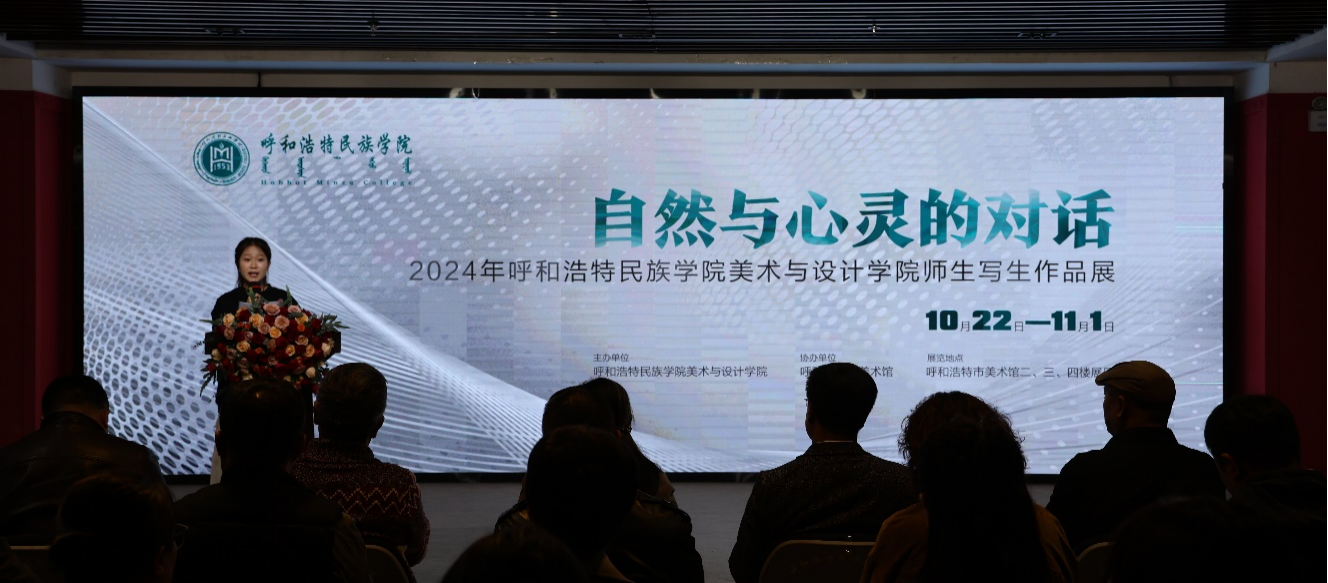 10月22日,美术与设计学院在呼和浩特市美术馆隆重举办了主题为“自然与心灵的对话”的师生写生作品展览。学校党委委员、纪委书记、监察专员王冬梅,学校党委委员、副校长额尔敦布和教授,学校党委委员、统战部部长朝格吉乐图,学校教务处副处长额日德木图出席开幕式。内蒙古艺术学院长海教授、内蒙古师范大学美术学院李崇辉教授、内蒙古艺术学院文管学院副院长云宇锋教授、呼和浩特职业学院美术学院副院长凯军教授、呼和浩特市美术馆支部书记、馆长左大宁、副馆长郭剑利以及美术与设计学院全体师生共同参加了开幕式。