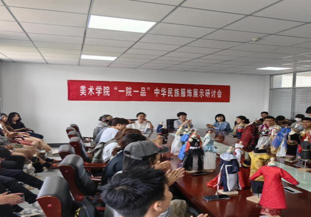 为进一步推动党建引领业务,有形有感有效地开展铸牢中华民族共同体意识教育,不断增强师生对中华民族的认同感和自豪感,6月20日,美术学院党总支组织服装设计教研室全体师生在沃德楼四楼会议室召开了“一院一品”中华民族服饰展示研讨会。研讨会由党总支书记吴利春主持,副处级组织员吉木斯,辅导员吴丰林以及服装设计教研室全体师生参加。
