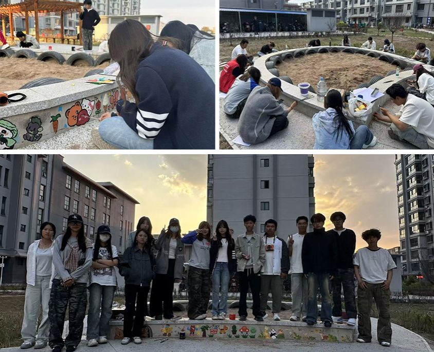 参观结束后,同学们到公主府社区深度参与民族团结进步教育“六进”活动。他们以艺术为桥梁,用手中画笔为社区公共空间“焕新颜”,以实际行动为社区美化驻入青春活力,让民族团结的种子在实践中生根发芽。