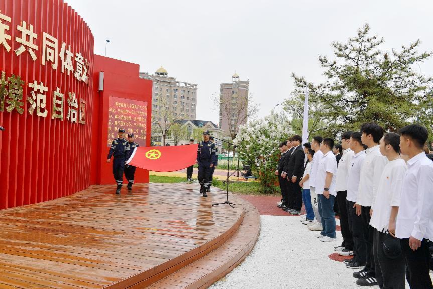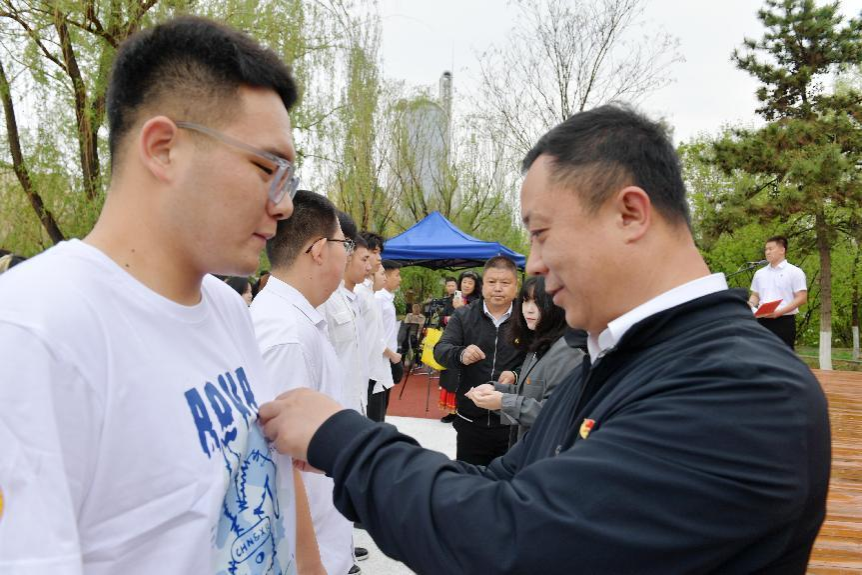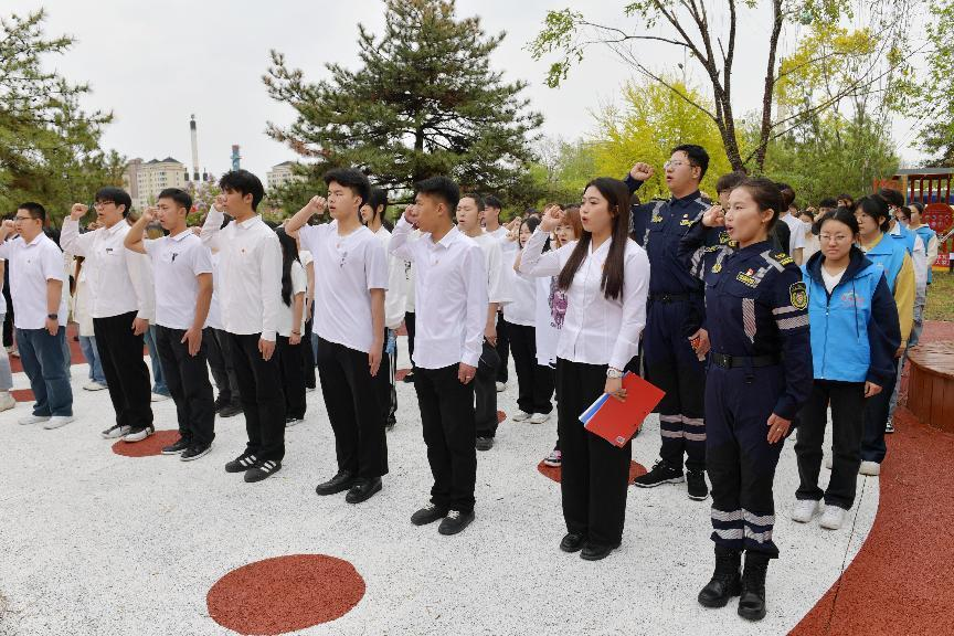 为深入学习贯彻习近平新时代中国特色社会主义思想,贯彻落实习近平总书记关于青年工作的重要论述,激发广大团员和青年纪念和传承五四精神,勇担青春使命、争做时代新人,4月28日上午,YABO鸭脖美术学院团总支与回民区团委、内蒙古北疆志愿服务联合会、内蒙古师范大学青年政治学院、内蒙古建筑职业学院等四家单位在回民区“红石榴”志愿服务主题公园联合举办了“青春奋进新时代  挺膺担当向未来”2024年集中规范性入团仪式。我院团总支书记魏伟、辅导员吴丰林带领2024年新入团团员和“红石榴”志愿服务队成员参加活动。