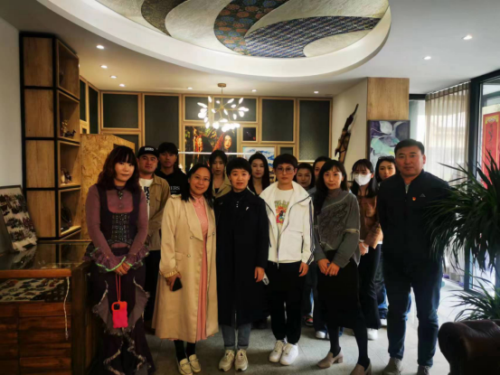4月20日下午,美术学院党总支副书记吴利春,辅导员常志君、服装与服饰设计教研室乌日汗老师以及学校就业指导处王慧东老师带领2019级服装与服饰设计专业班毕业生走访了内蒙古吉雅其民族服饰有限公司,就校园招聘、实习实训、人才培养、协同育人等方面进行了深入交流。