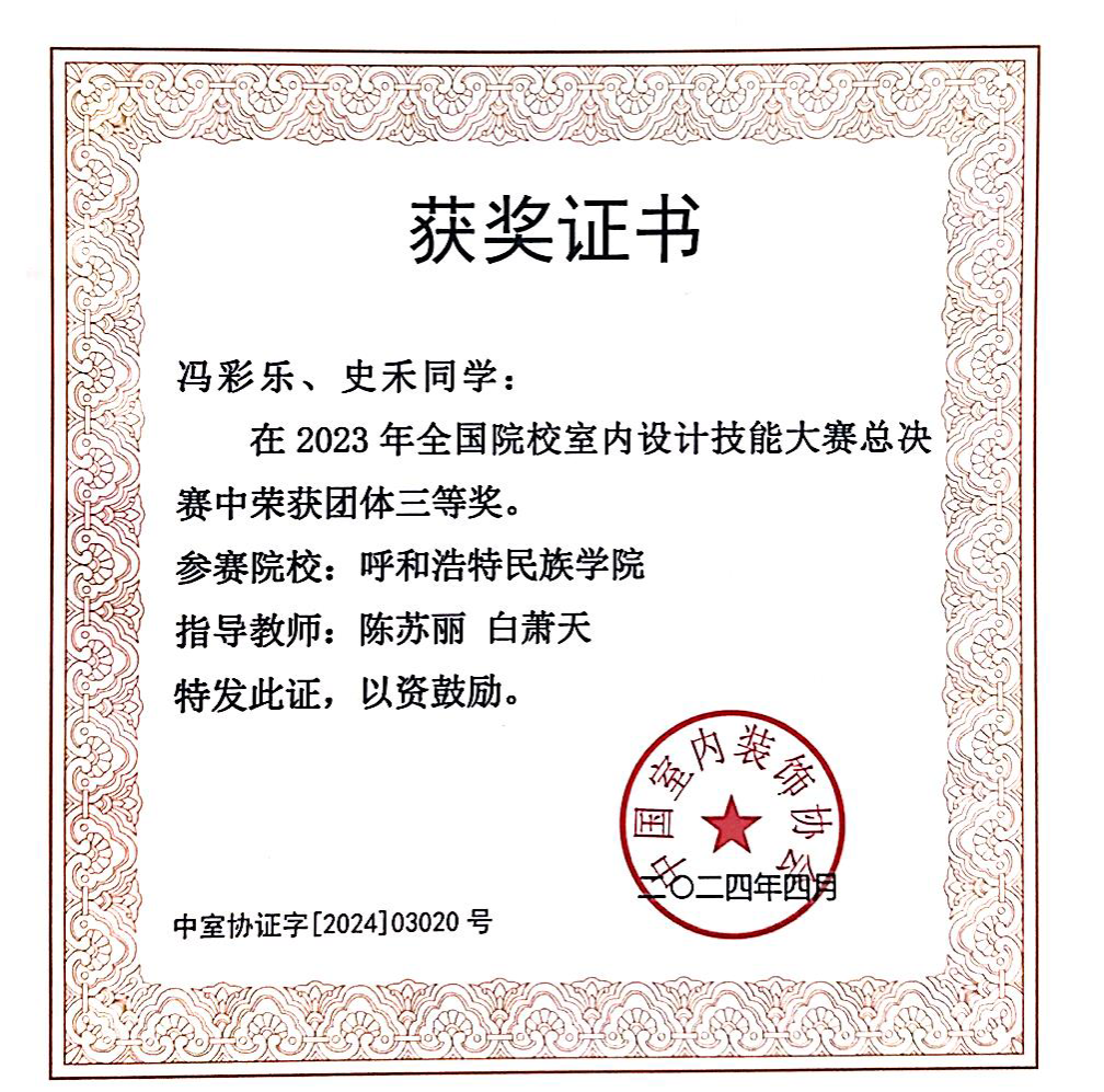 来自全国30多个省共1300余支参赛队参与角逐。我院魏伟、伊丽亚两位教师指导的《尺壁寸阴--大学生活动中心设计》(学生:杨茹平、薛文静)和陈苏丽、白萧天两位教师指导的《对话达芬奇—大学生活动中心设计》(学生:冯彩乐、史禾)两项作品均荣获全国院校本科组团体三等奖,成为此次比赛中唯一获奖的内蒙古自治区本科院校,取得了我区在全国设计类竞赛线下赛事上的新突破!