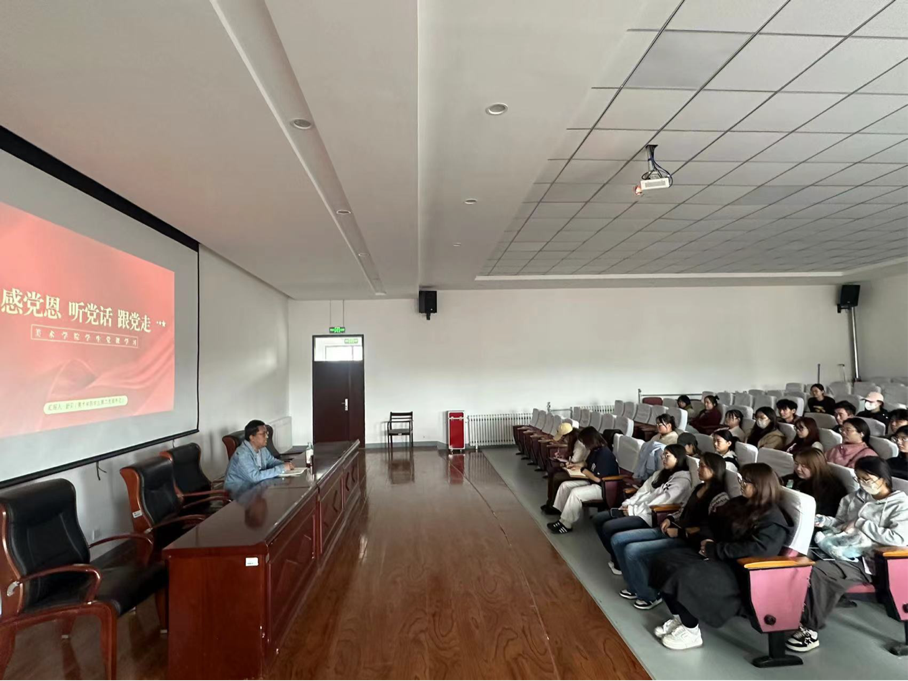 舒贝老师通过介绍建校初期至目前,在70年的办学历程中,学校办学定位的不断改进和提升,教学条件的改善、办学规模的扩大、人才培养的成效以及科研成果的获得等等方面,直接体现了党对自治区,尤其对民族院校一直以来的关心关怀和大力支持。他要求同学们,要铭记党恩,牢记使命,学好知识,强化本领,坚定信念,听党话跟党走,用实际行动参与到落实自治区五大任务中来,为全方位建设模范自治区作出新时代大学生应有的贡献。