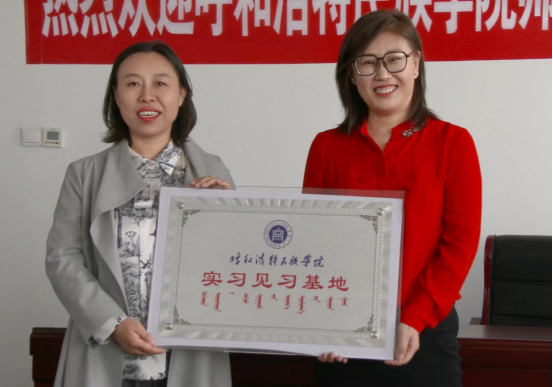 内蒙古蒙隆职业培训学校创办于2021年,是由呼和浩特市人力资源和社会保障局监管,在内蒙古民政厅备案的一所职业培训学校。在签约会上蒙隆职业培训学校白银花校长就如何为我院民族服装设计、民族手工艺制作专业学生提供职业资格专业培训,充分利用其"产、学、研、销"平台优势,形成资源互补,实现产业联动,从而带动我院学生就业创业方面做了介绍。塔娜副院长和白银花校长签订实践教学基地和就业合作协议,并举行了挂牌仪式。随后师生共同参观了蒙隆职业培训学校。