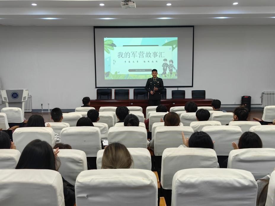 11月10日,美术与设计学院在美术楼407多媒体教室举办第二期“我的军营故事汇”宣讲活动。活动旨在发挥退役大学生士兵的模范引领作用,宣扬军队光荣传统,丰富同学们对国防事业的了解,增强其国防意识和爱国情怀,号召广大学生积极投身于国防事业,勇担青年的时代责任。活动由辅导员吴丰林主持,2024级全体同学130余人参加。