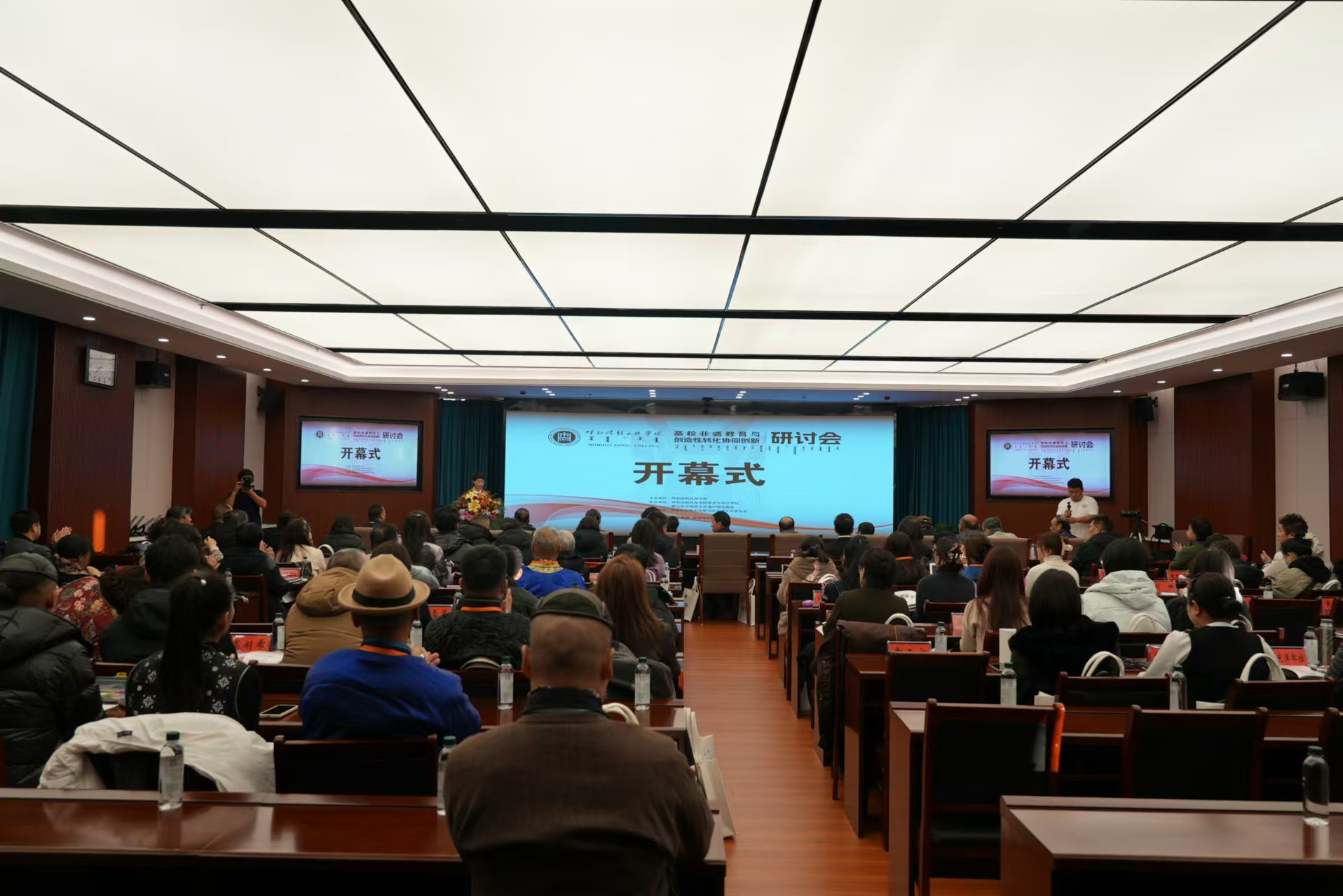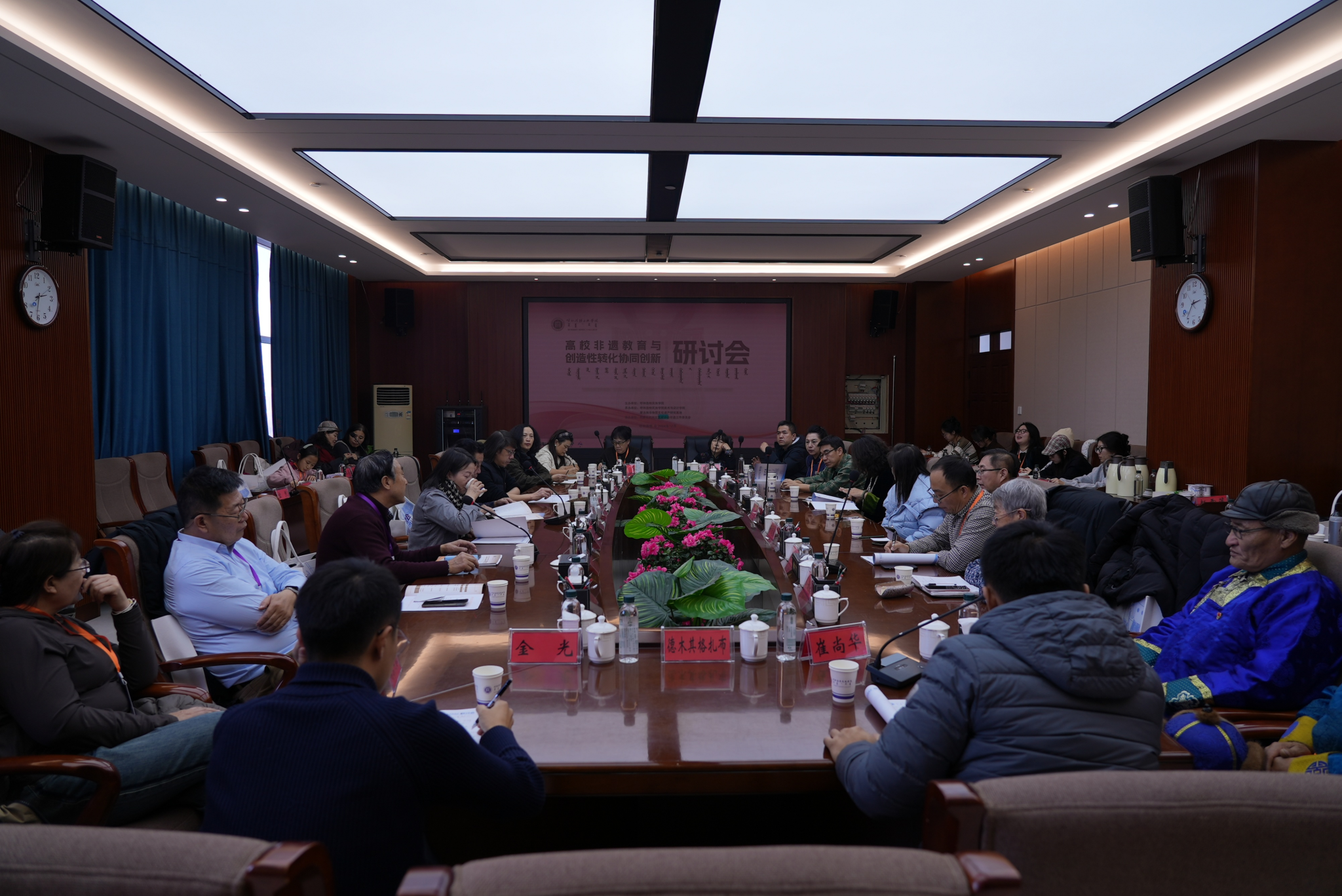 研讨会还设立了案例分享环节,集中呈现了四位专家在非遗传承与创新实践中的丰富经验和成果。潘德月教授以《传承非遗文化、弘扬华夏艺术工匠精神——兼论美育教育的重要性》为题进行案例分享;鸭脖美术与设计学院巴图教授以《民间艺术是一切艺术的母体——非遗与我的教学创作》为题进行案例分享;鸭脖美术与设计学院木仁老师以《非遗成果转化探索与实践》为题,进行案例分享;鸭脖美术与设计学院敖日格勒老师以《传承非遗文化——乌拉特式马鞍的研究与创作》为题进行案例分享。