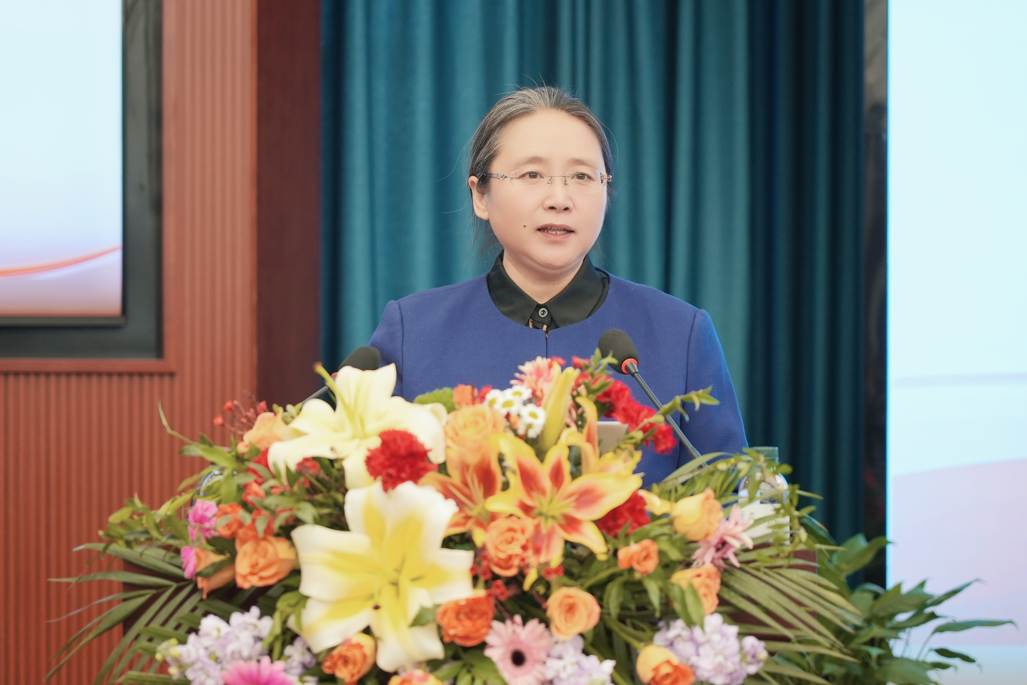 案例分享之后,进行了研讨会闭幕式。美术与设计学院副院长塔娜主持闭幕式。闭幕式期间,三个分论坛组长哈斯朝鲁、包国庆、李崇辉分别代表各小组作了交流发言。