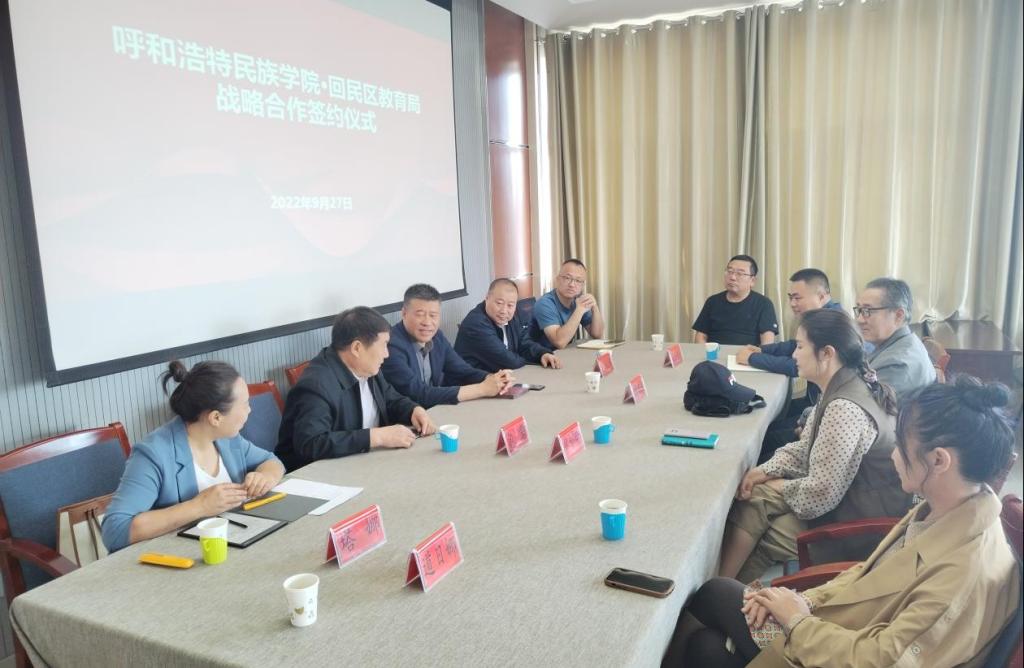 9月27日上午,由学校党委委员、统战部部长、美术学院分管联系领导包君率队,教务处副处长佟繁荣,美术学院党总支书记包旭东,副院长高特木乐,塔娜,服装教研室主任道日娜教授,回民区政协委员包都荣副教授一行7人赴回民区教育局举行了全面战略合作签约仪式。回民区教育局副局长崔斌、人事科负责人龙欧鹏、基础教育科负责人张胜利出席签约仪式。