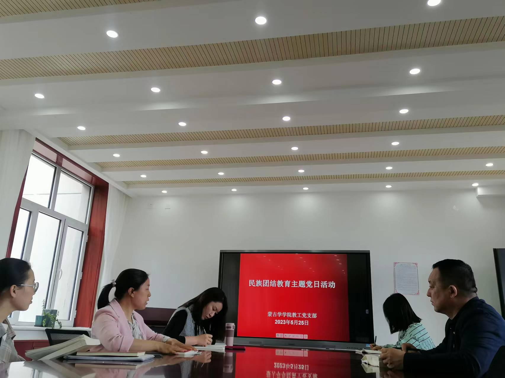 为学习贯彻习近平新时代中国特色社会主义思想和中共二十大精神,落实全方位建设“模范自治区”工作任务,引导全体党员“感党恩、听党话、跟党走”铸牢中华民族共同体意识,5月25日下午,蒙古学学院教工党支部开展以“铸牢中华民族共同体意识”为主题的党日活动,组织党员观看了民族团结教育影片《爱无疆》。