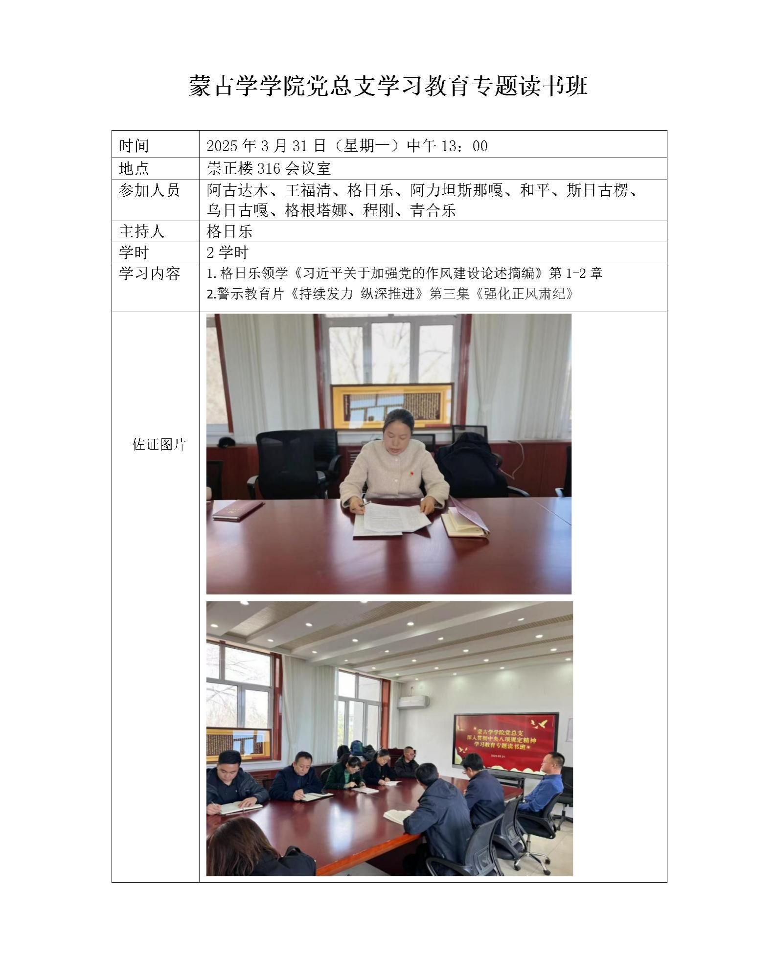 蒙古学学院党总支学习教育专题读书班