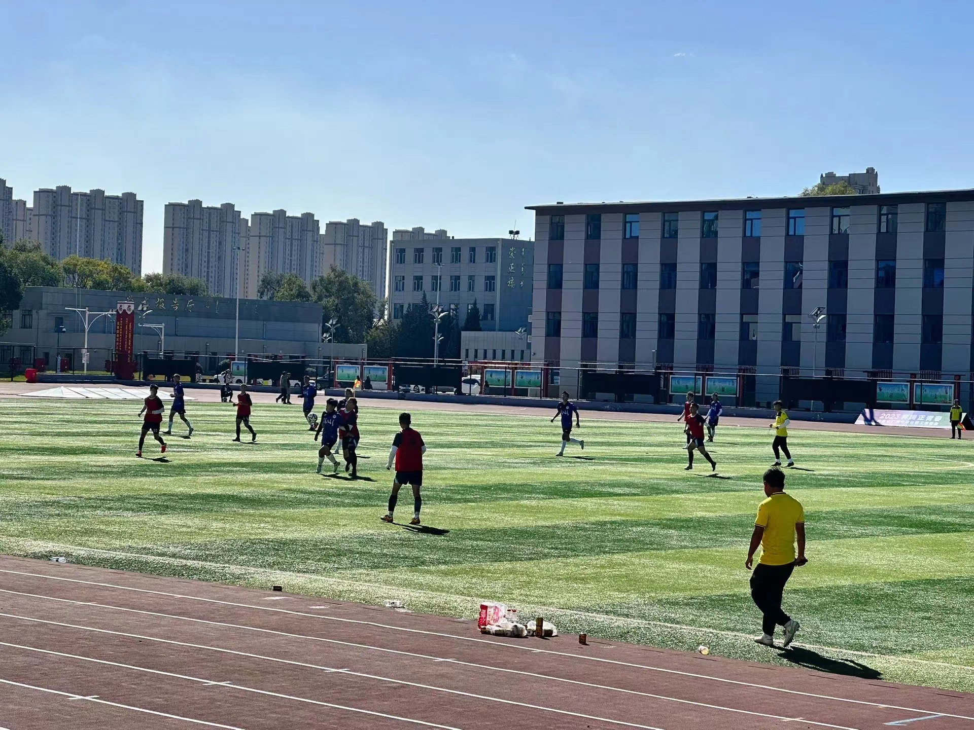 在激烈的足球比赛中,我们看到了队员们的努力和热情,我院足球队在淘汰民族学学院、公共管理学院和体育学院足球队后,挺进了决赛。在与新闻传媒学院争夺冠军赛中,双方队员都展现出了极高的竞技水平。尽管双方的实力相,但我们队员在场上毫不畏惧,充分发挥自身优势保持了良好的节奏,积极拼抢,永不言败展现了出色的配合与传球能力。最终我院以3:2的比分赢了决赛并获得了本届校园“迎新杯”足球赛的冠军。