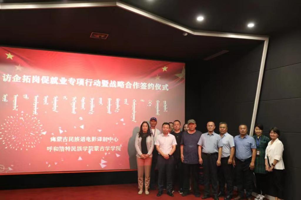 7月11日下午,为深化校企合作,促进供需对接,助力毕业生高质量就业,学校党委委员、党政办主任朝格吉乐图、蒙古学学院党总支书记周双喜、院长王福清一行到内蒙古民族语译制中心开展访企拓岗调研交流。