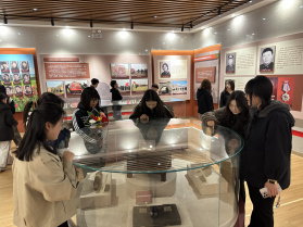 活动开始,学生们有序进入陵园展厅参观。展厅内,众多珍贵的历史文献与实物展品有序陈列,生动再现了革命先烈们英勇奋斗的光辉历程。学生们认真聆听讲解,仔细观看展品,被革命先烈们的英勇事迹和崇高精神深深感动。