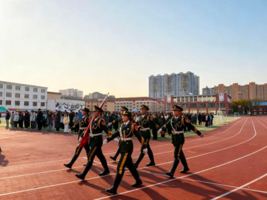 仪式现场,师生整齐列队,庄严肃立。英姿飒爽的国旗护卫队迈着铿锵步伐护送国旗入场。在雄壮的《义勇军进行曲》中,鲜艳的五星红旗冉冉升起,全体师生高唱国歌,向国旗行注目礼。