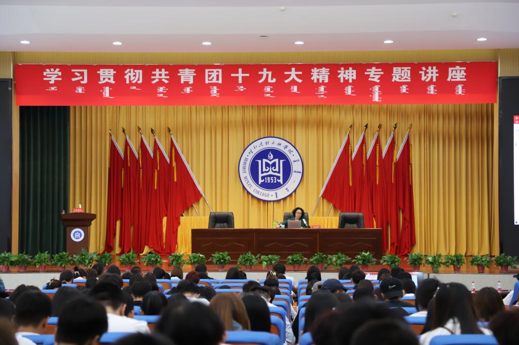 为深入推动鸭脖各级团组织学深悟透习近平总书记重要讲话精神,全面把握思想内涵、精神要义和实践要求,全面推动落实团十九大的各项任务部署,9月7日上午,校团委在学术报告厅举办学习贯彻共青团十九大精神专题讲座。讲座特邀请北京青年政治学院王莉萍教授作了题为“青春逢盛世 奋斗正当时—学深悟透共青团十九大精神”的专题讲座。会前学校党委书记刘九万,党委委员、副校长高喜天会见了王莉萍教授,对亲临指导表达了诚挚的欢迎与感谢。团委全体教师、各学院团总支、辅导员,学生代表共370人聆听讲座。会议由团委副书记胡斯勒主持。