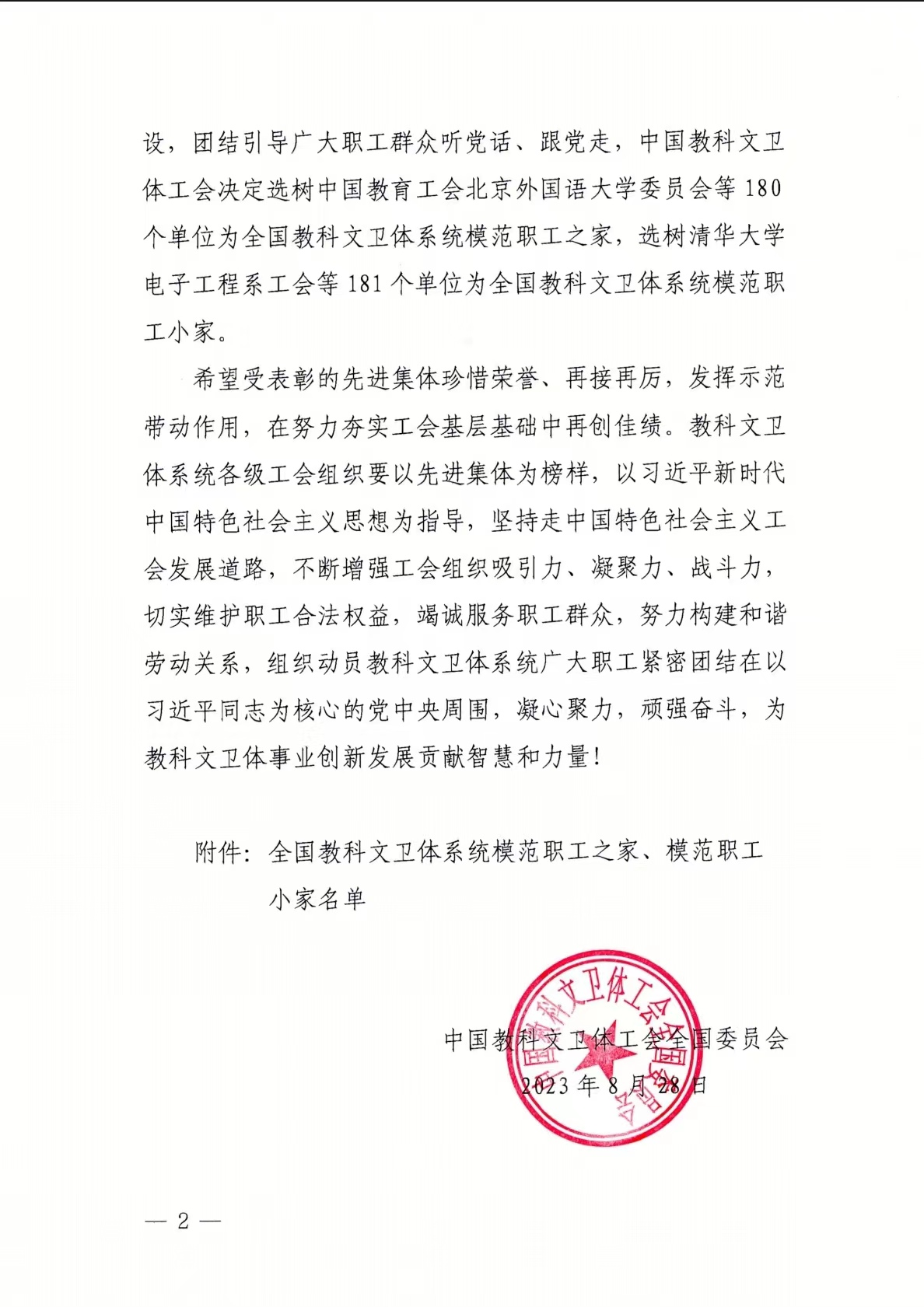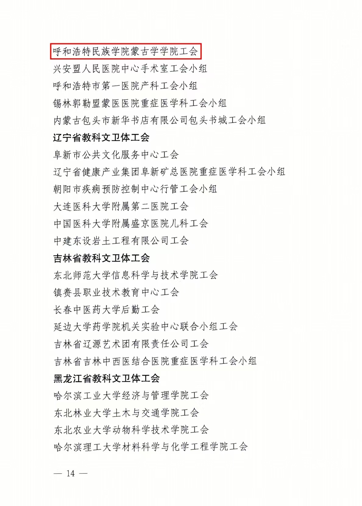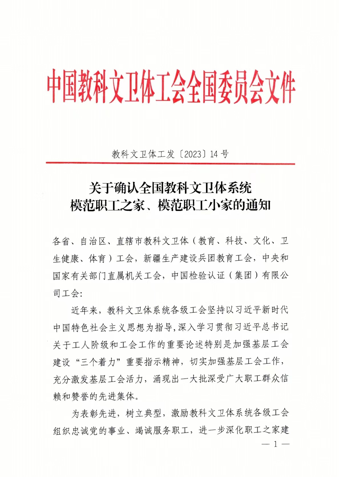 近日,中国教科文卫体工会全国委员会下达文件,选树命名了全国教科文卫体系统模范职工之家、模范职工小家。鸭脖蒙古学学院工会喜获全国教科文卫体工会“模范职工小家”荣誉称号。这是全面评价工会工作的综合奖项,也是工会系统的最高荣誉,今年内蒙古自治区只有2所高校获得此殊荣。