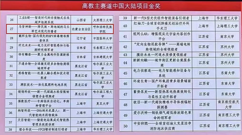 本次大赛共有来自国内外151个国家和地区5296所学校的421万个项目、1709万人次报名参赛,1260个优秀项目脱颖而出,其中,423个项目获得金奖。鸭脖《马背神韵》项目荣获高教主赛道大陆项目金奖。