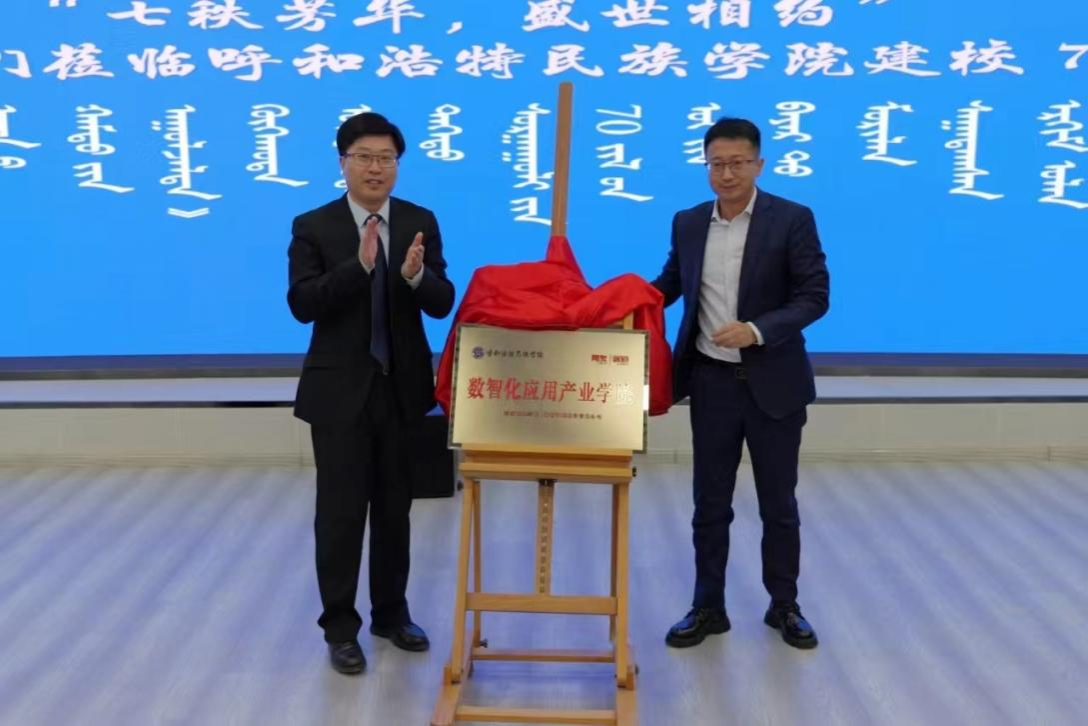 韩伟新和米波共同为“数智化应用产业学院”揭牌。