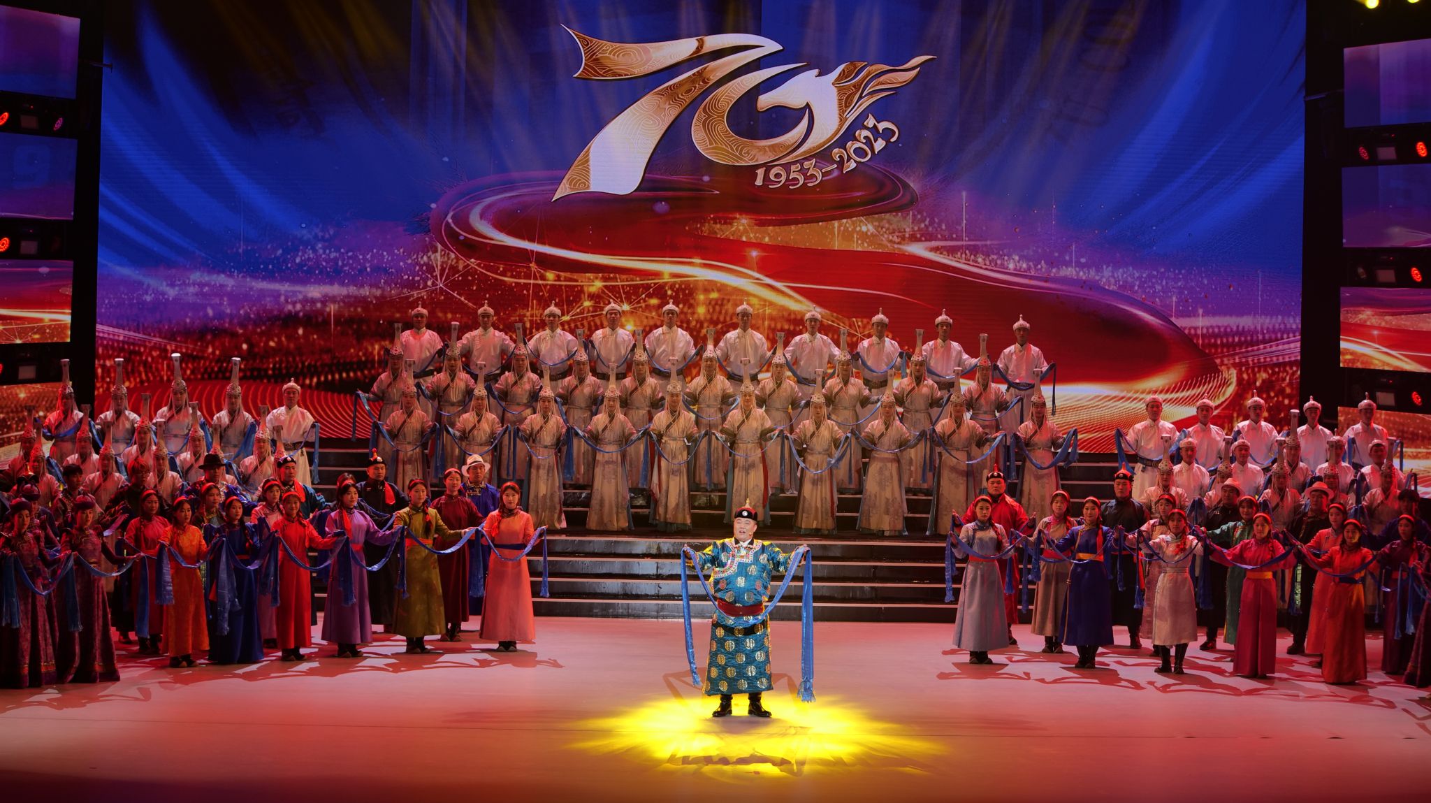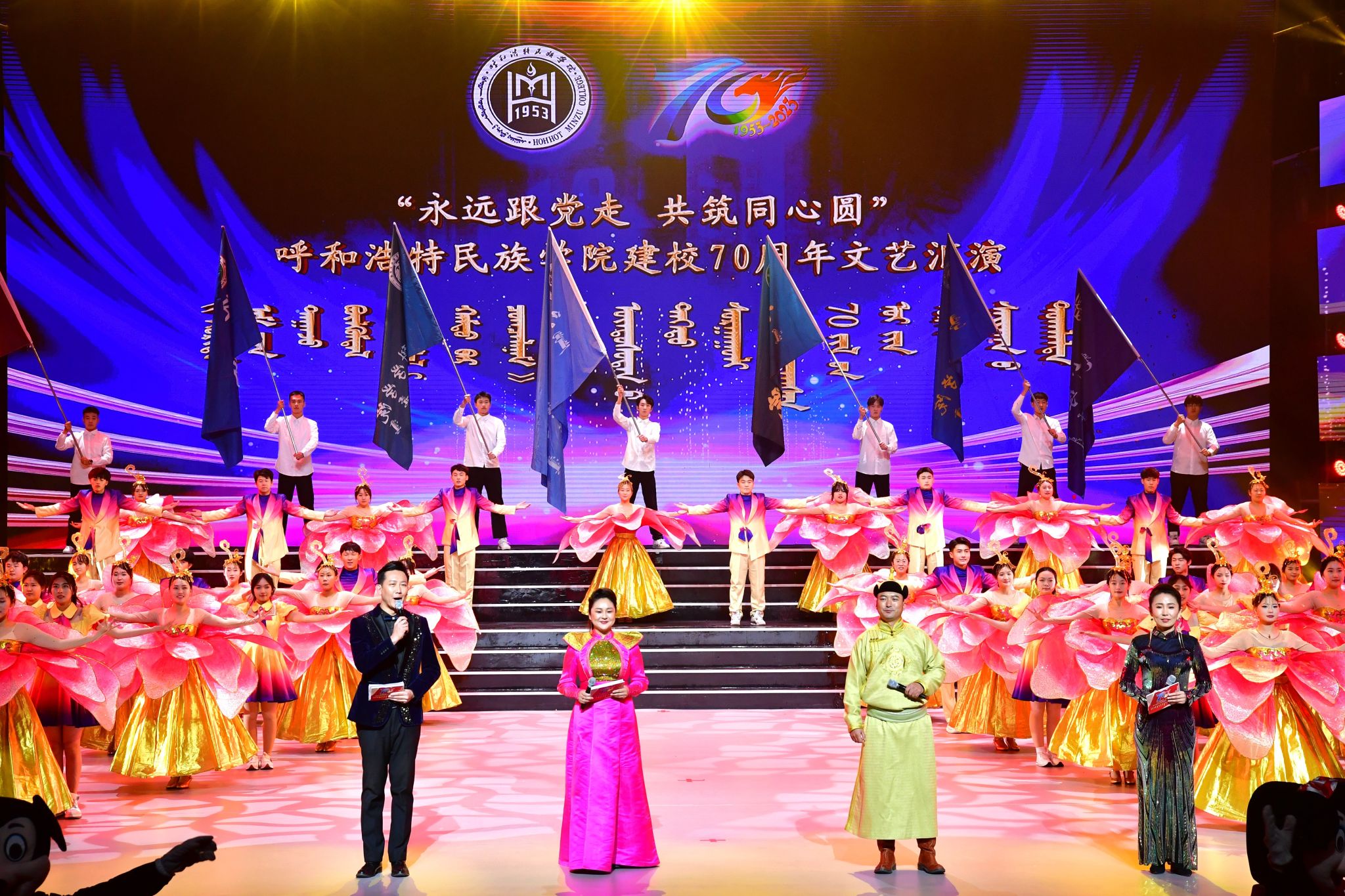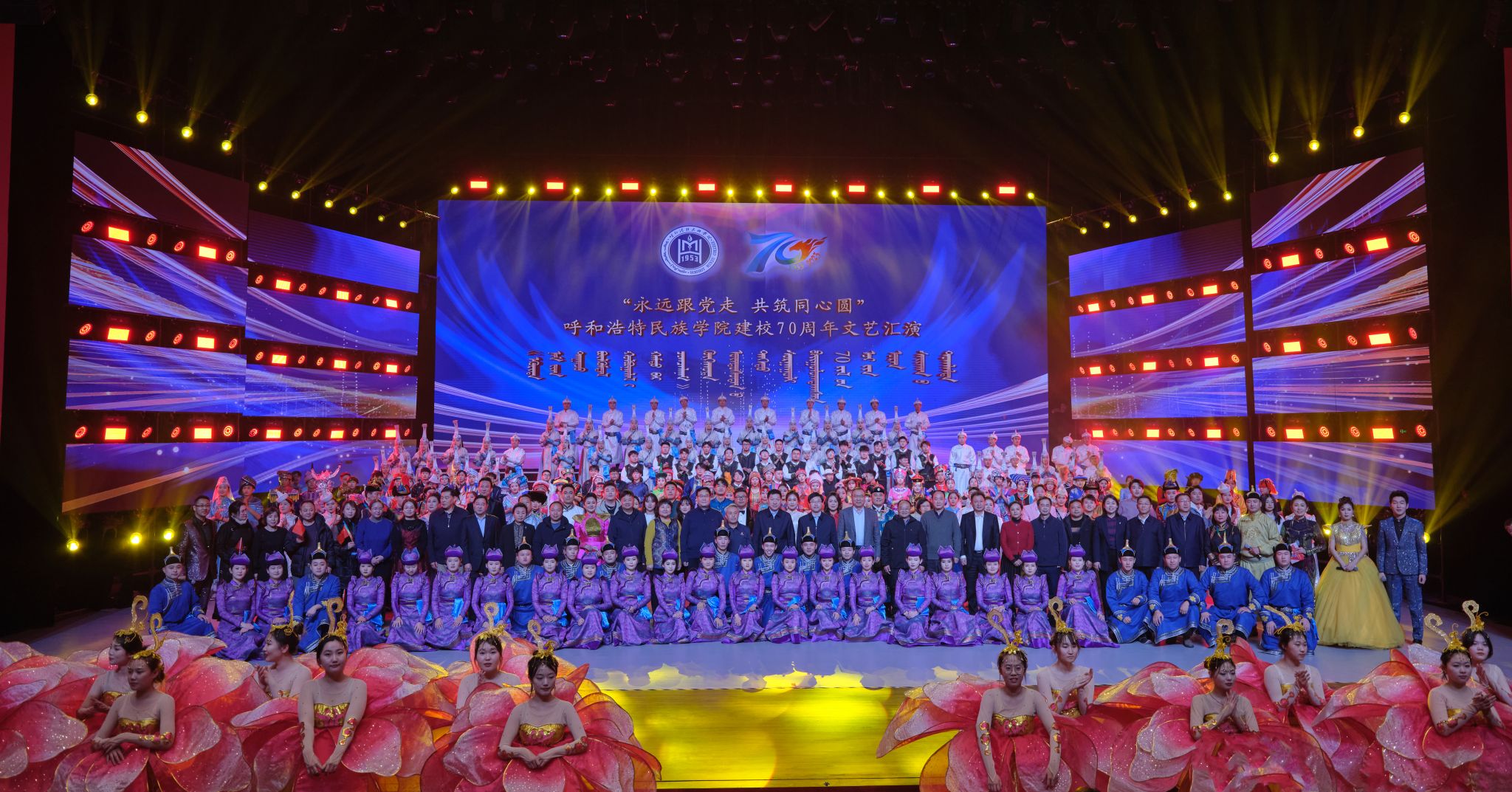 校党委书记刘九万,党委副书记、校长韩伟新等全体校领导陪同国家民委直属高校、地方民族院校、区内兄弟院校代表和广大校友、在校师生代表一同在现场观看了汇演。海内外全体呼民院人欢聚一堂、共襄盛会,共同回顾学校70年来走过的风雨历程,共同抒发对学校的深情厚谊,共同展望学校的美好未来。