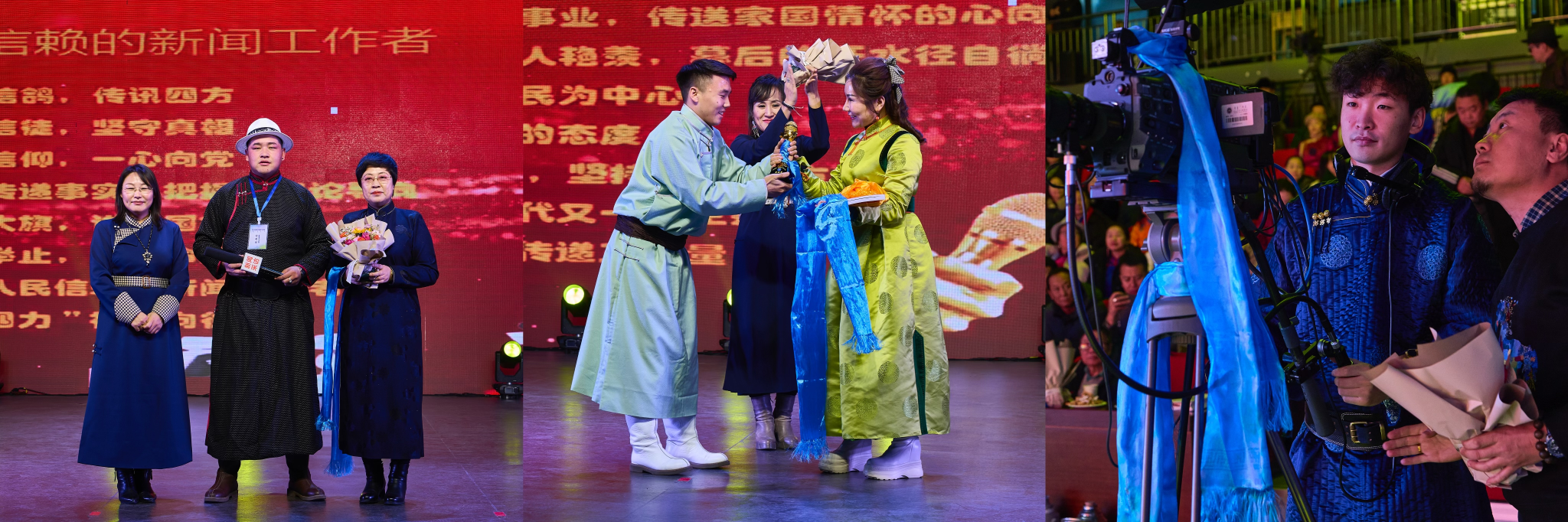 全国百佳主持人、内蒙古广播电视台十佳主持人、1996级播音班校友阿拉腾花将象征弘扬主旋律的正能量主播薪火传递至2021级播音班代表希吉日手中,希冀年轻播音学子能以人民为中心,坚持正确方向,用真诚、热情的态度,传播党的声音。