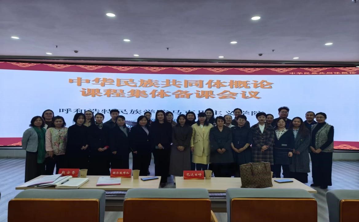在习近平总书记“3·18”重要讲话5周年来临之际,为深入学习贯彻习近平总书记关于加强和改进民族工作的重要思想,充分发挥《中华民族共同体概论》课程主渠道、主阵地作用,积极引导学生铸牢中华民族共同体意识,3月9日,马克主义学院以6所高校联学联建的形式,举行《中华民族共同体概论》集体备课会。校党委委员,副校长额尔敦布和、内蒙古艺术学院马克思主义学院、内蒙古医科大学马克思主义学院、内蒙古化工职业学院思政部、内蒙古商贸职业学院思政部、内蒙古体育职业学院基础教学部主要负责人、学校马克思主义学院党总支书记吴美荣、副院长赵梅兰、副书记韩琼及任课教师参加了此次备课会。