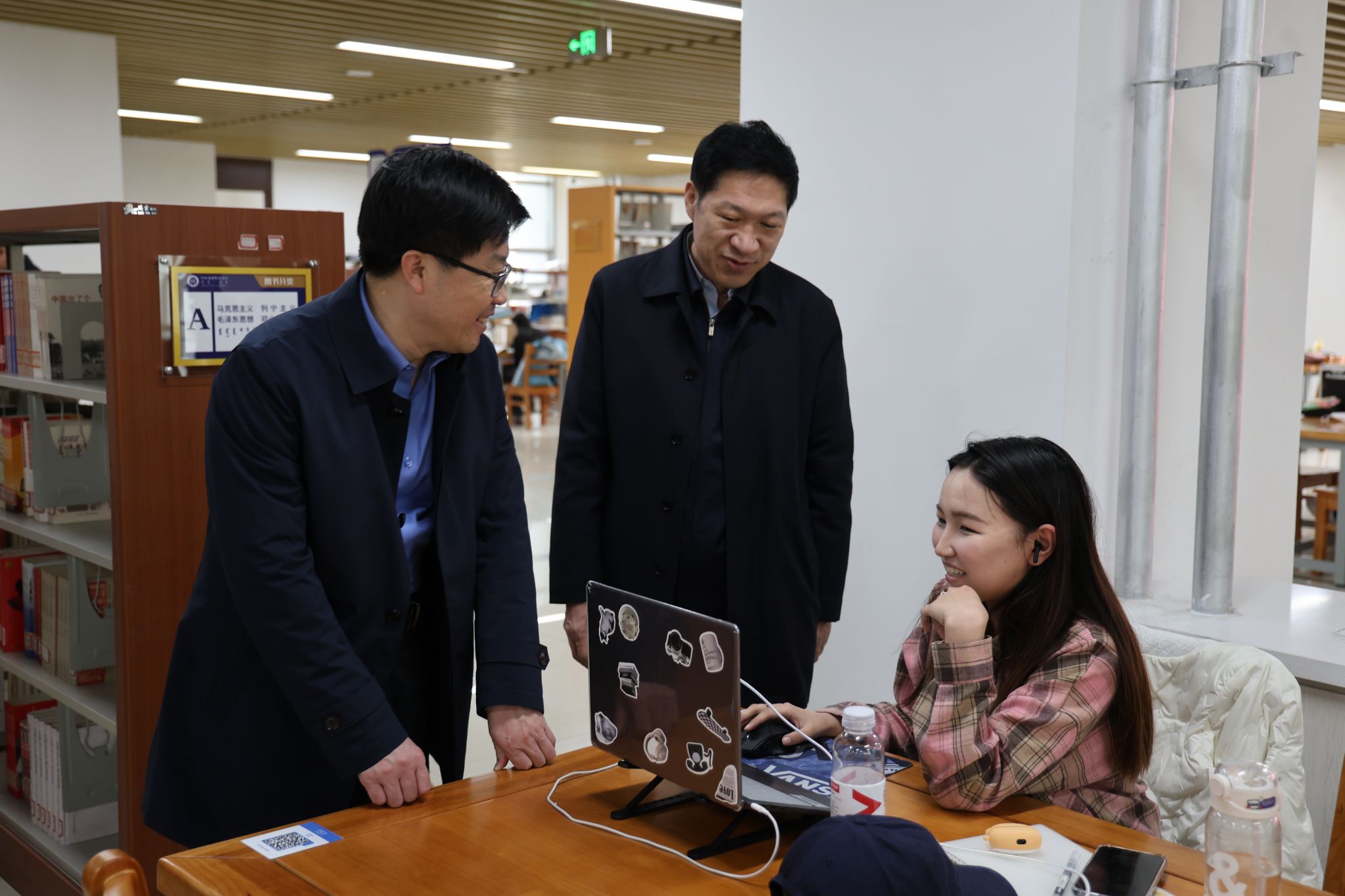 在图书馆,校领导详细了解自习室、阅览室、铸牢中华民族共同体意识专区等区域功能设置、服务质量、学生读书学习等情况,并对古籍文献的优化与鉴定、温湿度设备的配备、电子阅览区及多媒体阅览室的启用、图书馆信息系统服务器的虚拟化建设以及硬件运维服务托管模式等方面提出了指导性意见。