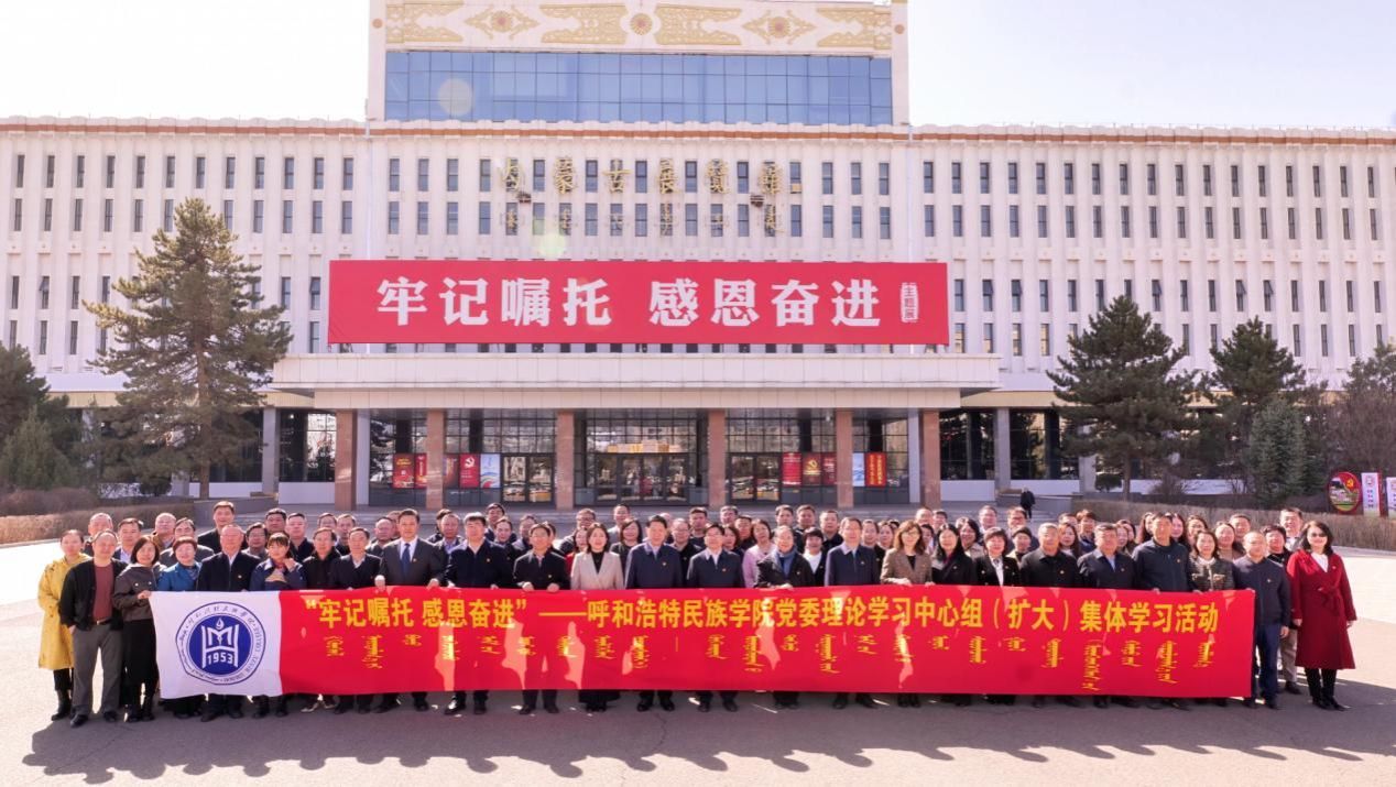 3月29日上午,校党委书记刘九万,党委副书记、校长韩伟新等党委理论学习中心组成员与全校副处级以上干部赴自治区展览馆参观“牢记嘱托 感恩奋进——办好两件大事 奋力书写中国式现代化内蒙古新篇章”主题展,开展现场教学活动。