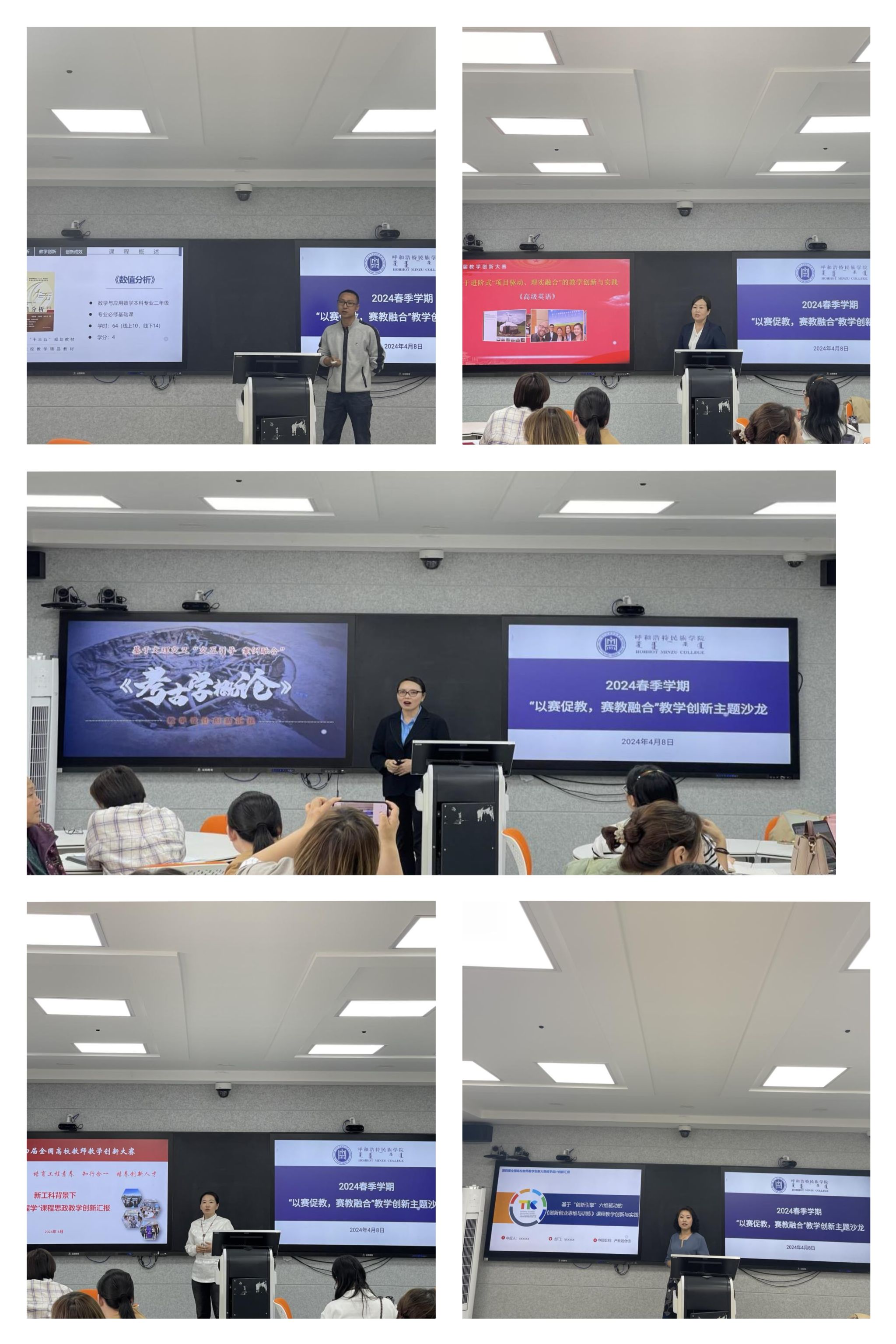 何斯日古楞、阿娜尔、包呈敏、海拉、陈玉珍五位教师依次进行教学创新汇报。