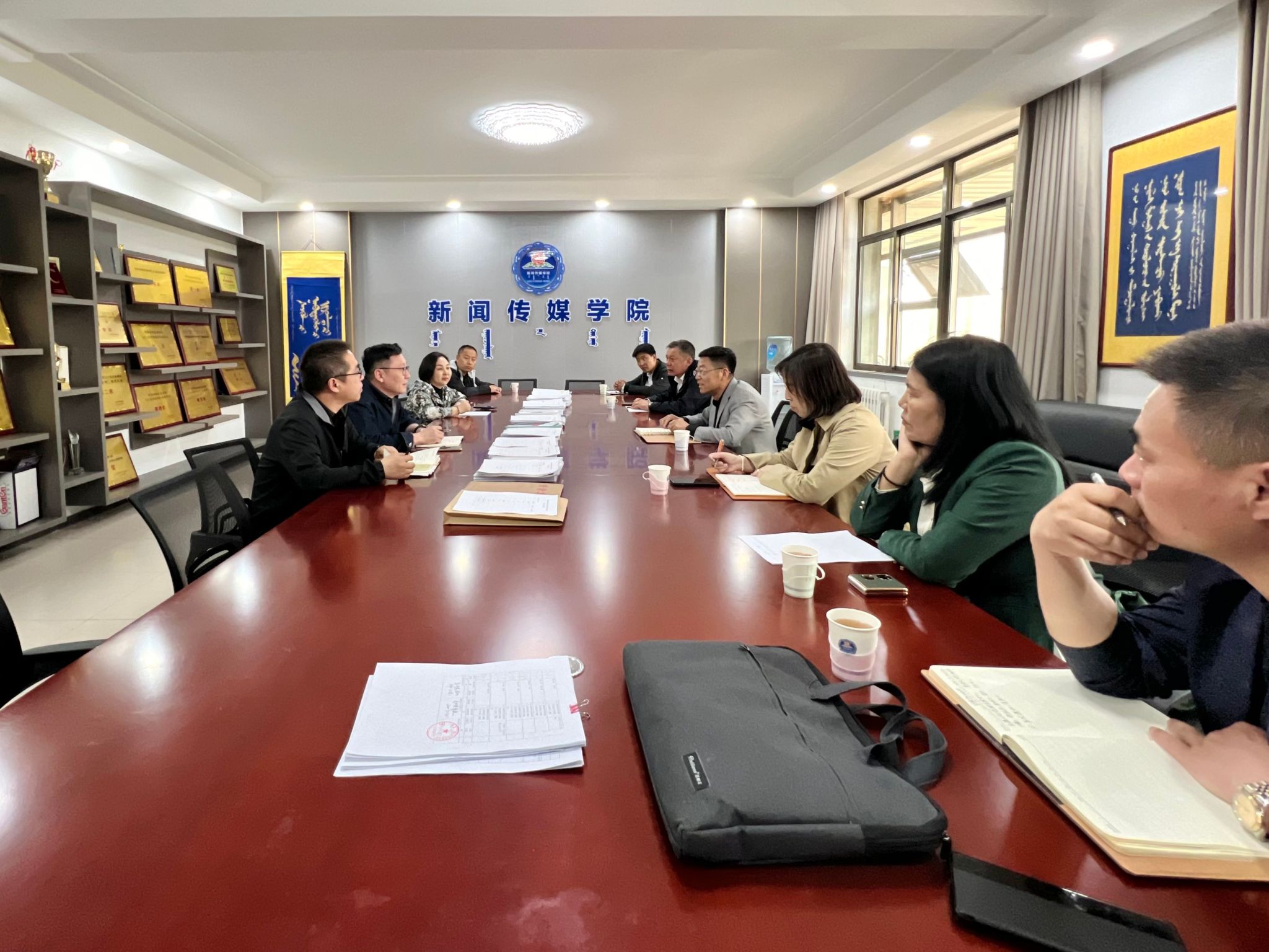 4月24日,校党委委员、副校长高喜天一行深入新闻传媒学院,召开北疆文化传播实践中心建设调度会。就如何充分有效利用学校现有场地和各类资源,加快推进北疆文化传播实践中心建设进行现场办公。