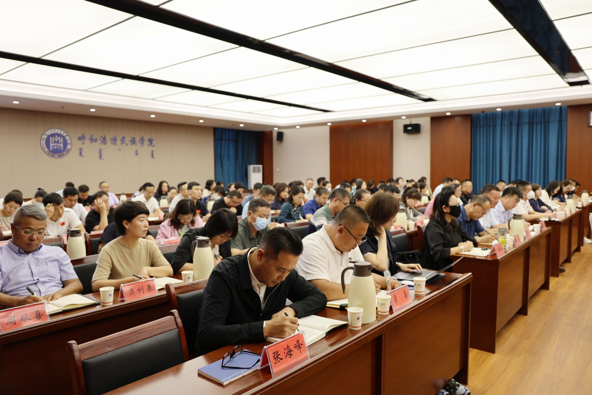 刘九万指出,2024年上半年,学校坚持以习近平新时代中国特色社会主义思想为指导,全面贯彻党的教育方针,落实立德树人根本任务,全面贯彻铸牢中华民族共同体意识这条主线,深入开展党纪学习教育,牢牢把握高质量发展这一首要任务,团结带领全校师生,攻坚克难,推动各项事业取得显著成效。接下来,我们还要统一思想,振奋精神,深入学习贯彻党的二十届三中全会精神,贯彻落实自治区党委十一届八次全会精神,分析研判新形势新任务,持续聚焦服务自治区“两件大事”,扎实推动学科专业转型发展,不断深化改革,推动学校事业高质量发展,为推动实现中国式现代化内蒙古新篇章贡献呼民院力量。