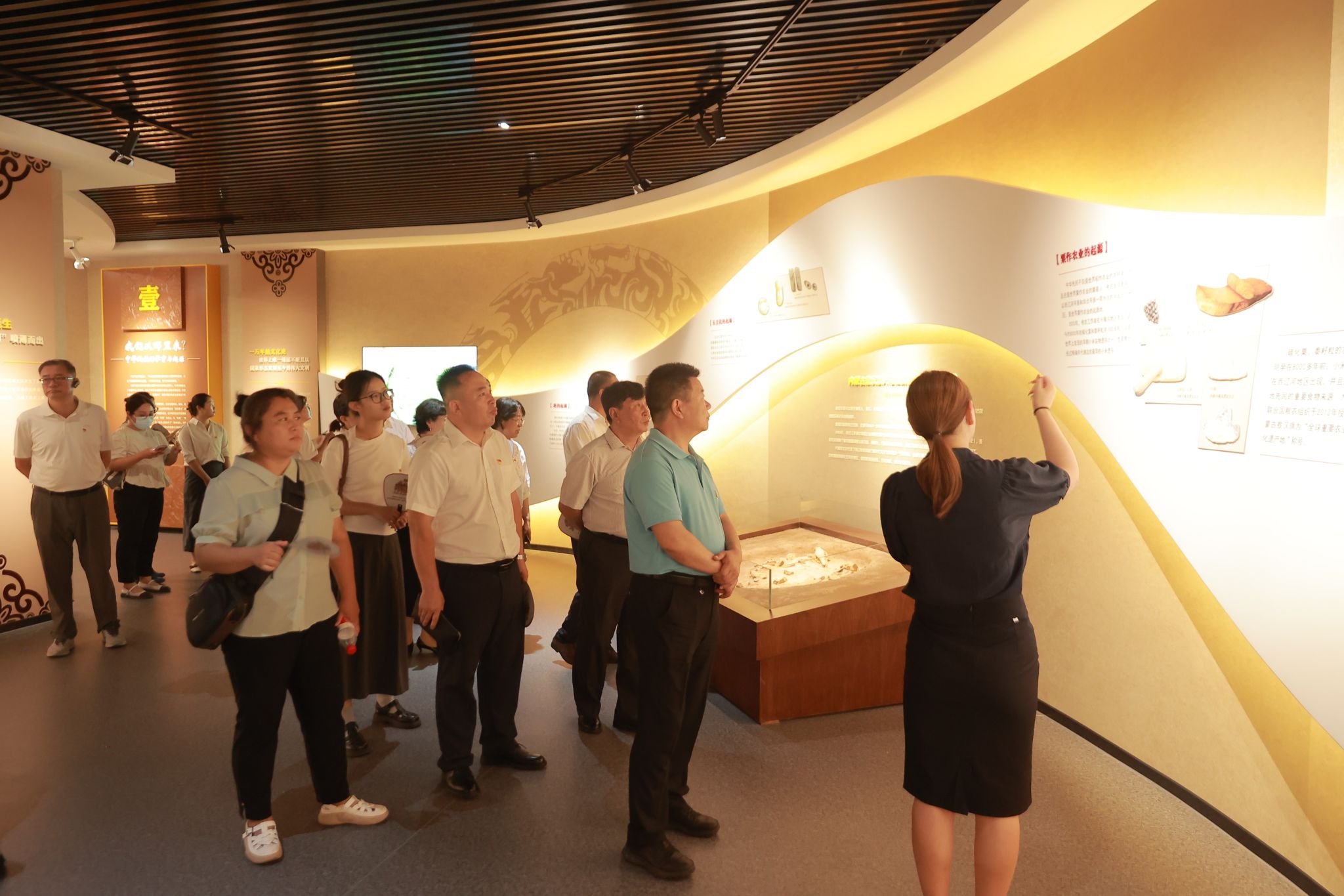 范建华副主任一行在教育馆中认真聆听“北疆小红马”的学生讲解,深入了解中华文明多元一体起源、党的民族工作百年光辉历程与历史成就、内蒙古自治区坚定不移走中国特色解决民族问题的正确道路等主要内容,并深入校史馆了解学校办学71年的发展成就。