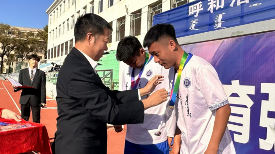 赛后,在南足球场进行了颁奖仪式。校党委委员、副校长双虎,党政办公室主任包仓,体育学院院长乌日根牧仁分别颁发了一等奖、二等奖、三等奖、体育道德风尚奖、优秀裁判员、最佳射手奖等奖项。