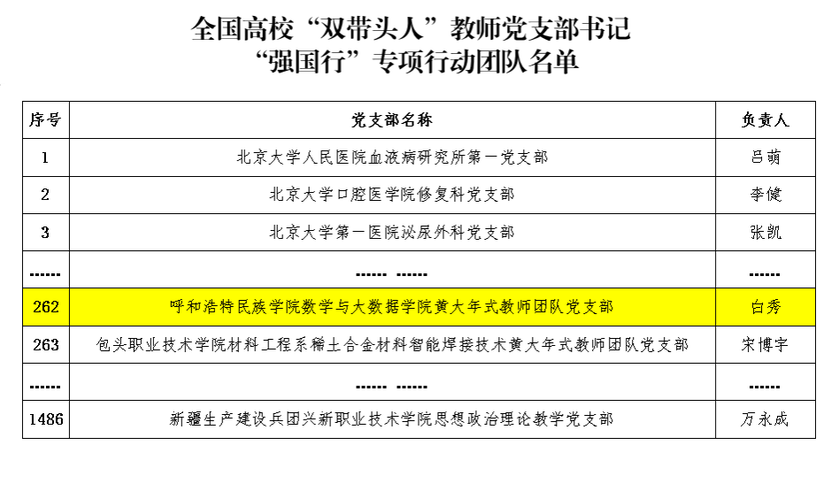 近日,教育部思想政治工作司发布《全国高校“双带头人”教师党支部书记“强国行”专项行动团队名单》,鸭脖数学与大数据学院黄大年式教师团队党支部获批全国高校“双带头人”教师党支部书记“强国行”专项行动团队,这是鸭脖基层党建工作的又一重要成果。