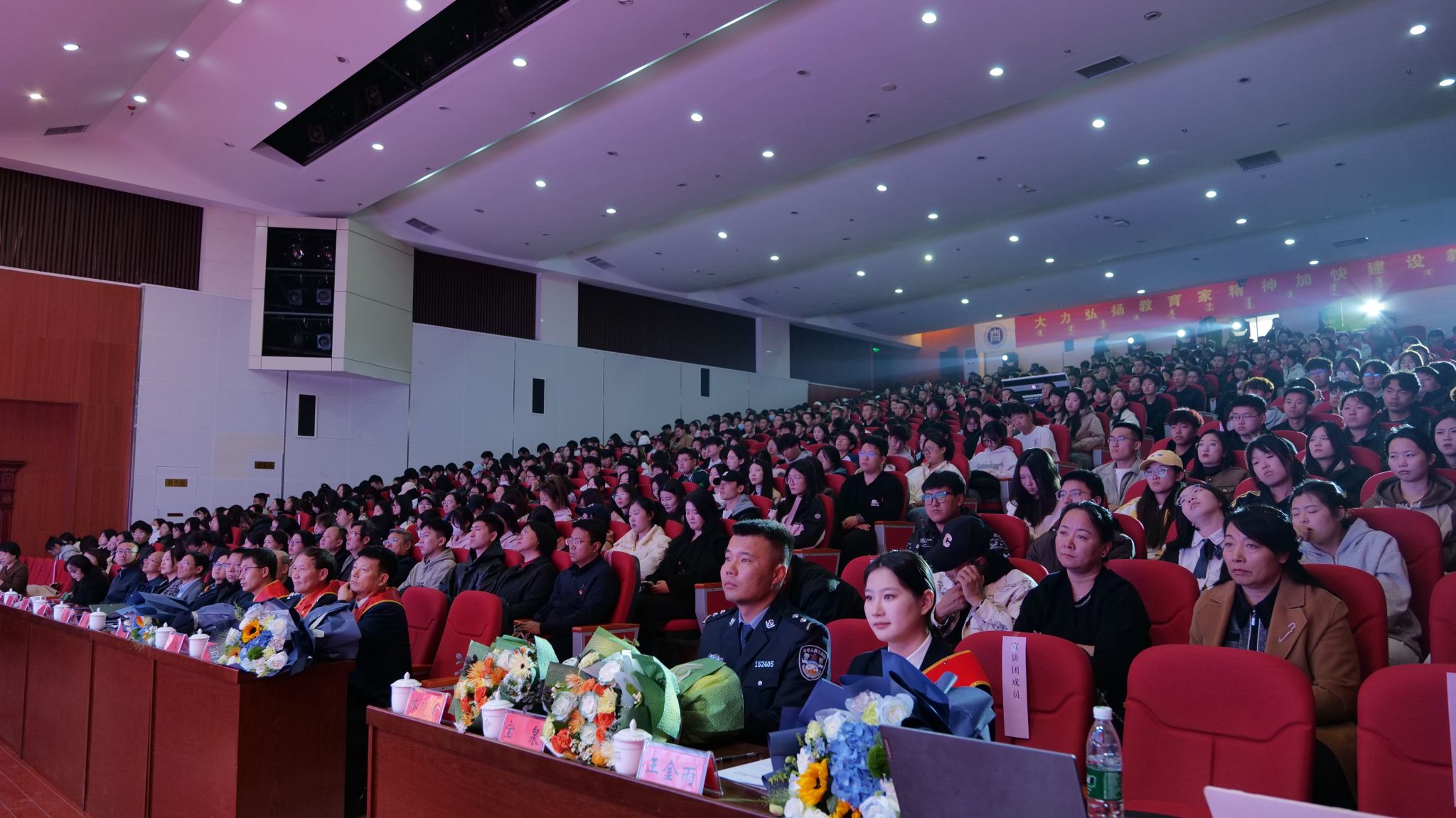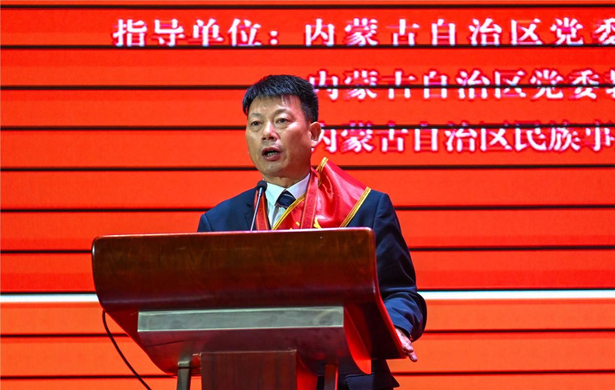 为深入学习贯彻落实习近平总书记在全国民族团结进步表彰大会上的重要讲话精神,充分发挥好模范典型引领作用,大力宣传全国民族团结进步模范集体和模范个人的事迹和贡献,营造崇尚模范、学习模范、争当模范的浓厚氛围,10月31日,由内蒙古自治区党委统战部、内蒙古自治区党委教育工委、内蒙古自治区民族事务委员会主办的全国民族团结进步模范事迹报告会在鸭脖成功举行。自治区民委党组成员、副主任康宇凤,自治区党委统战部宣传教育处处长杨洁,自治区党委统战部二处副处长高鹏华 ,自治区教育工委宣传部、统战部部长,自治区教育厅思想政治工作处处长刘惠,自治区民委办公室正处级干部刘智博,自治区民委民族团结促进处处长李日树、副处长巴萨日娜,校党委书记刘九万,党委委员、副校长高喜天,党委委员、副校长双虎出席活动;自治区驻呼各高校、鸭脖师生代表共600余人到会聆听。